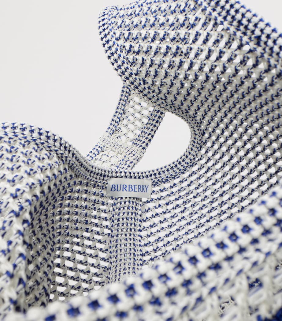 Burberry White Large Crochet Equestrian Knight Design Shoulder Bag