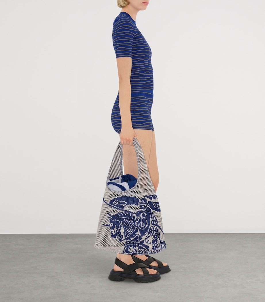 Burberry White Large Crochet Equestrian Knight Design Shoulder Bag - white / OS
