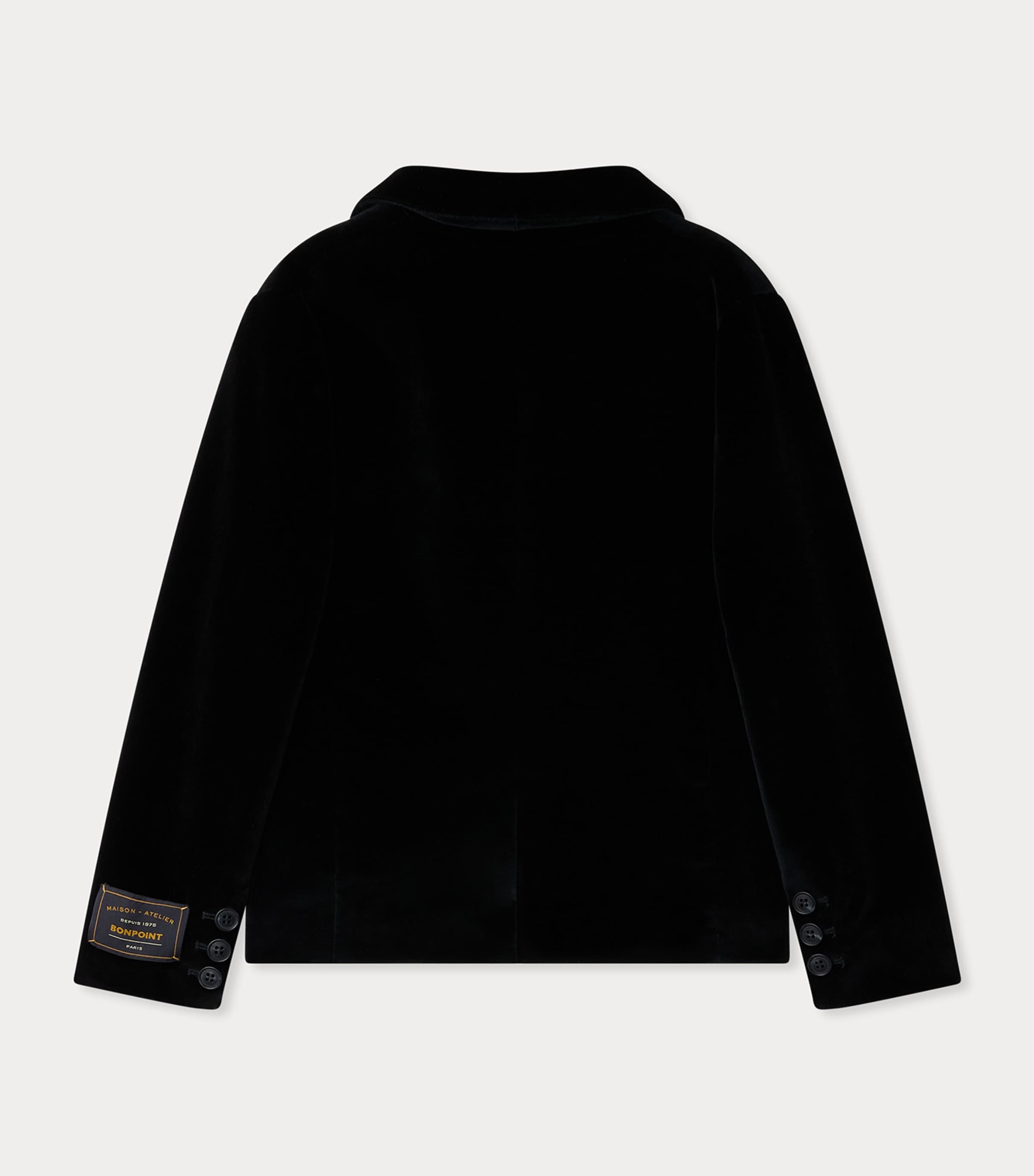 Bonpoint’s Teo blazer uses certified organic cotton velvet to produce a plush surface that reads refined without excess, while the button fastening secures a simple silhouette designed for effortless formality. Buttoned cuffs and a straight cut give structure while the striped lining introduces a discreet burst of personality when sleeves are turned up.
