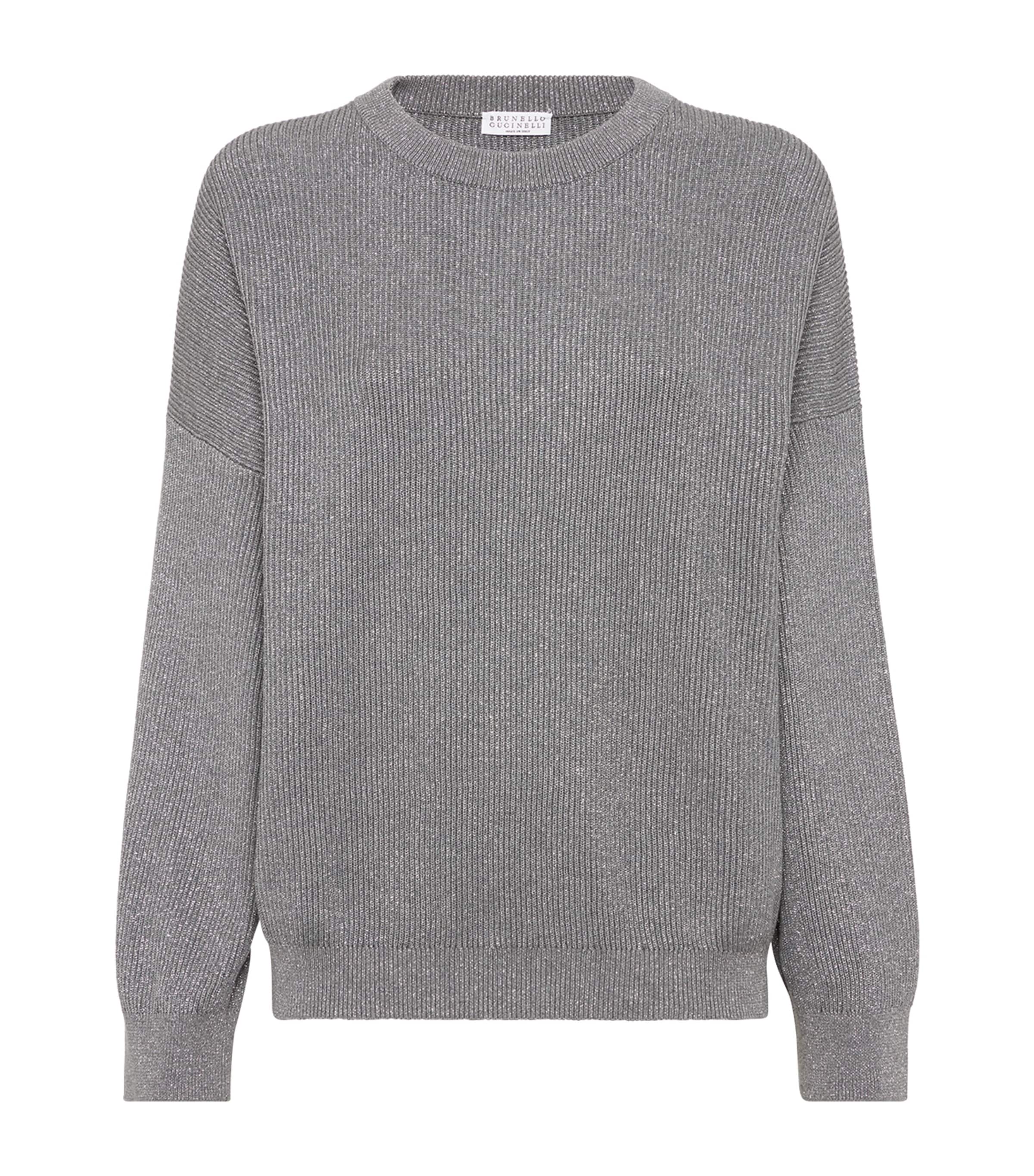 Brunello Cucinelli Grey Cotton-Blend Sparkling Vanisé Sweater
