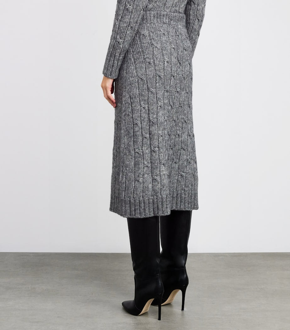 Grey Cotton-Alpaca-Wool Midi Skirt