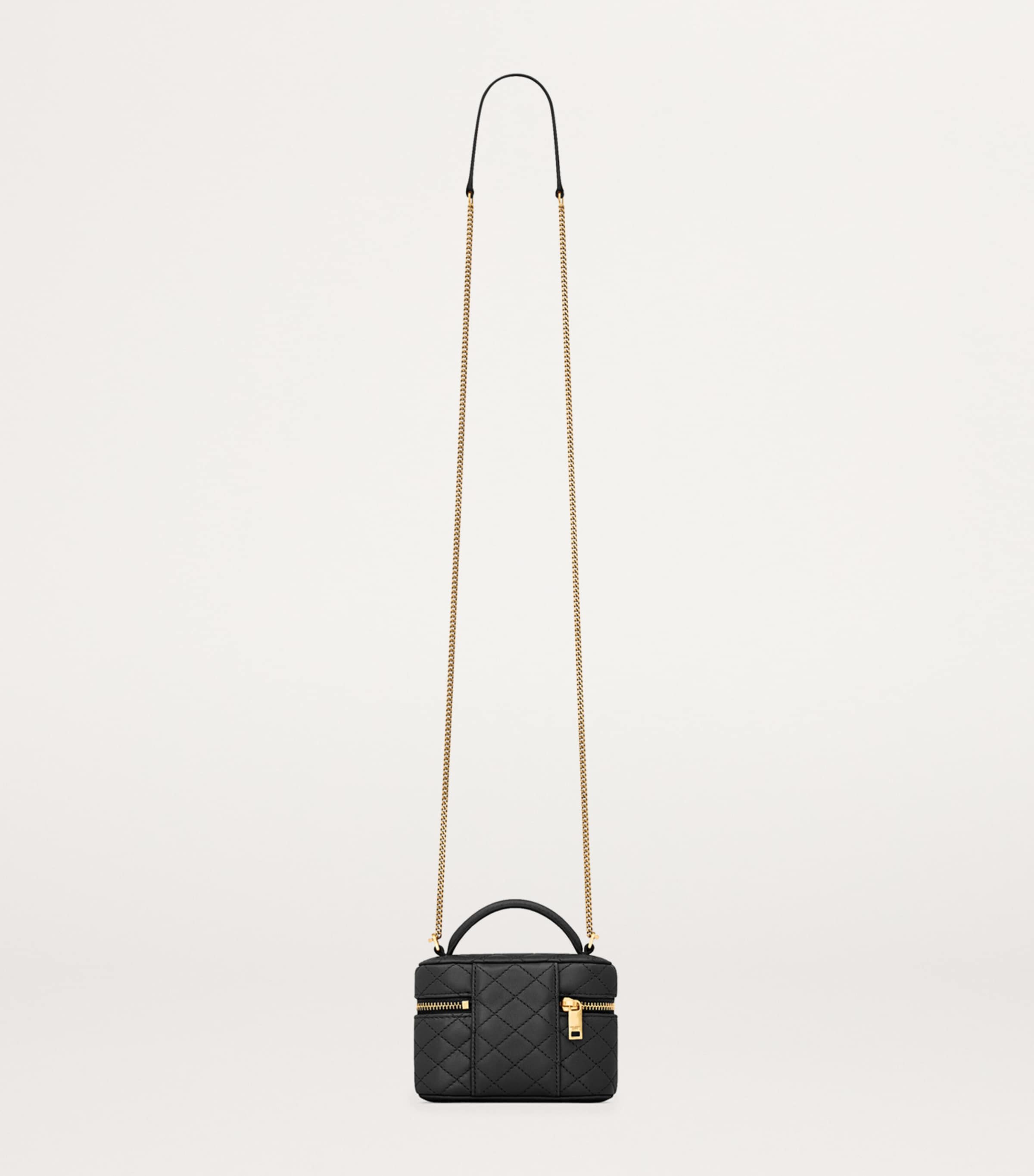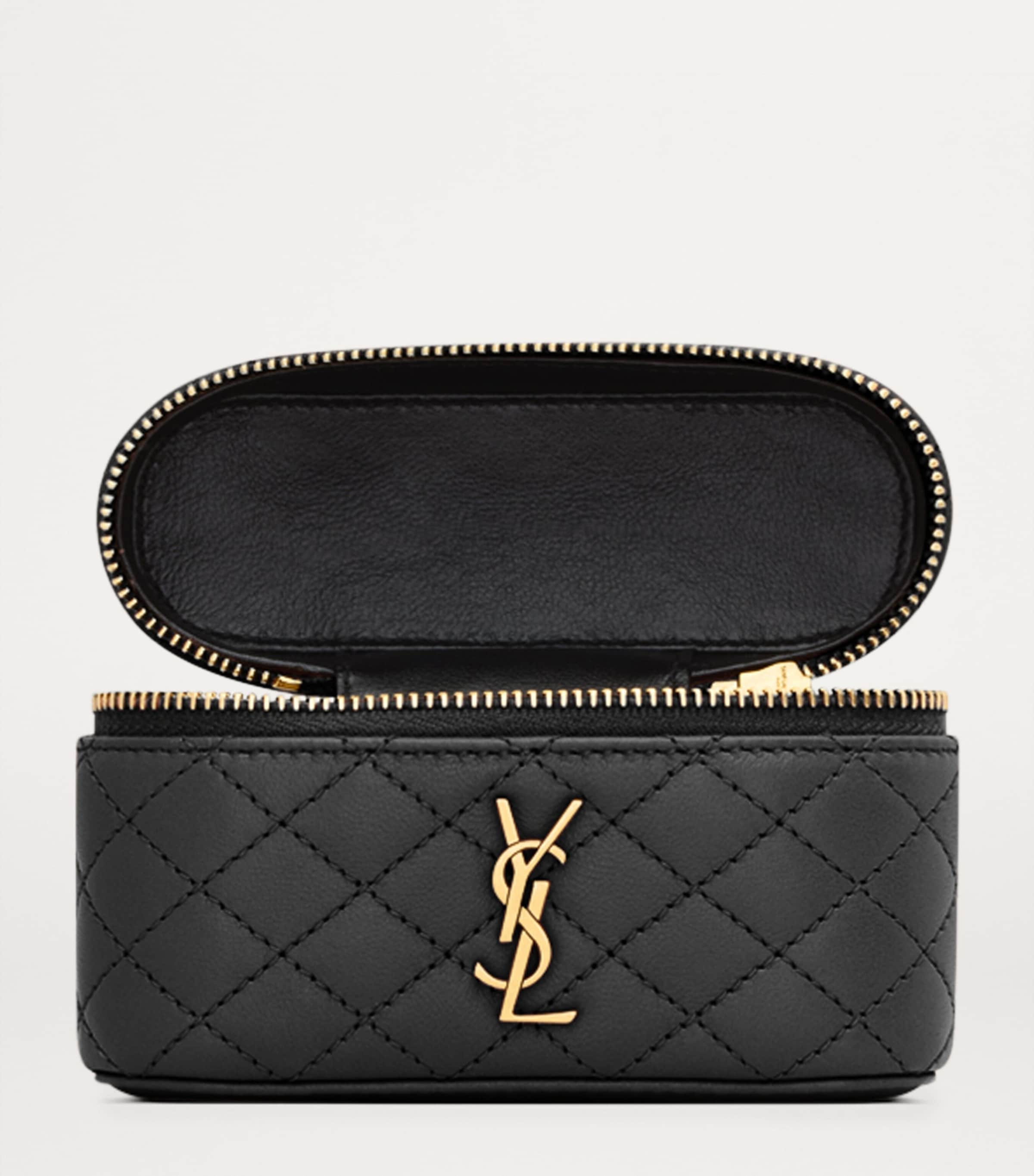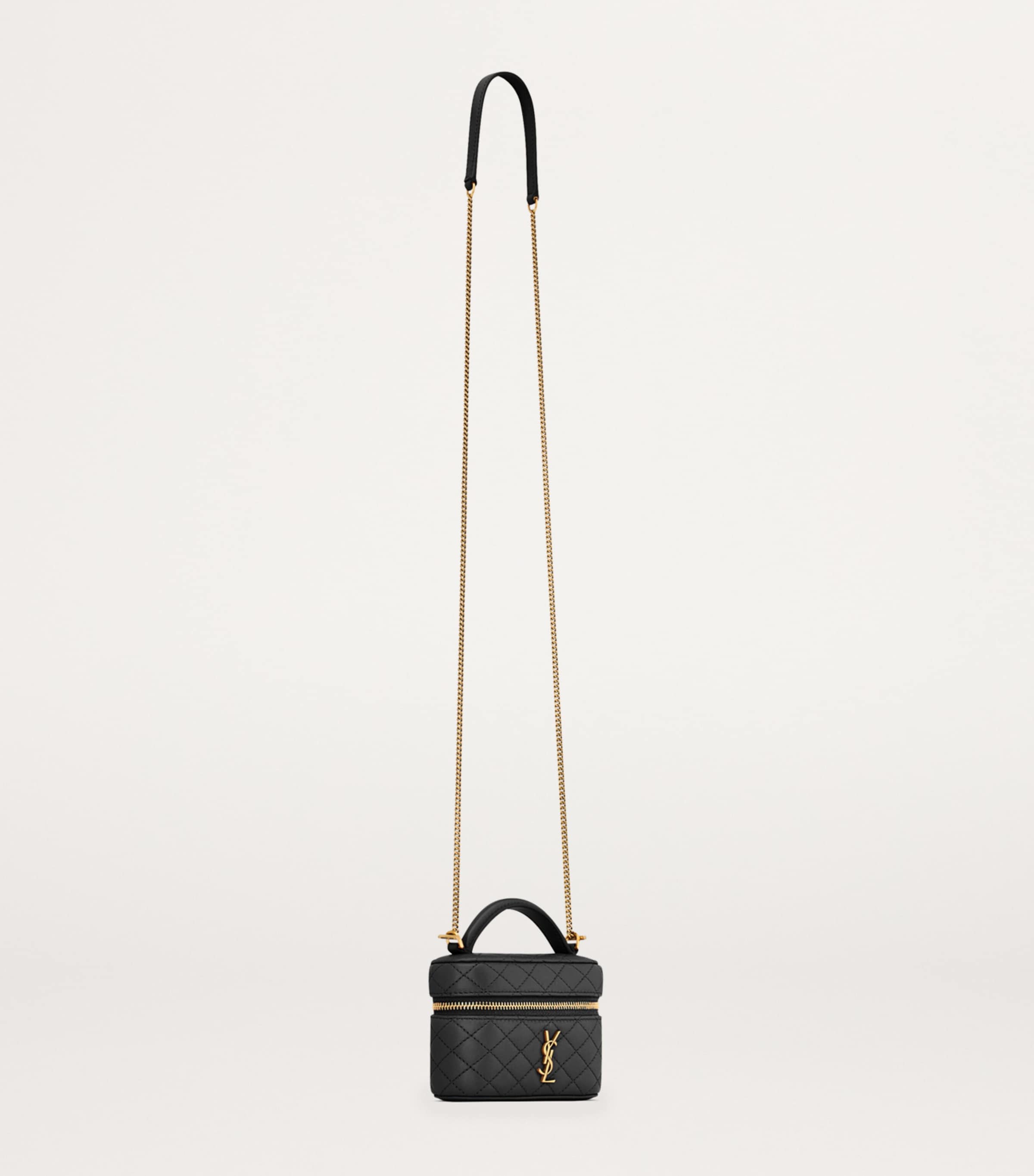 Saint Laurent's Gaby collection embodies classic Parisian style with its iconic matelassé stitching, creating a quilted leather look that's signed off with coveted YSL hardware. This micro bag takes a delightful box shape, providing it with a youthful feel and plenty of room for your smaller essentials within its sophisticated design.