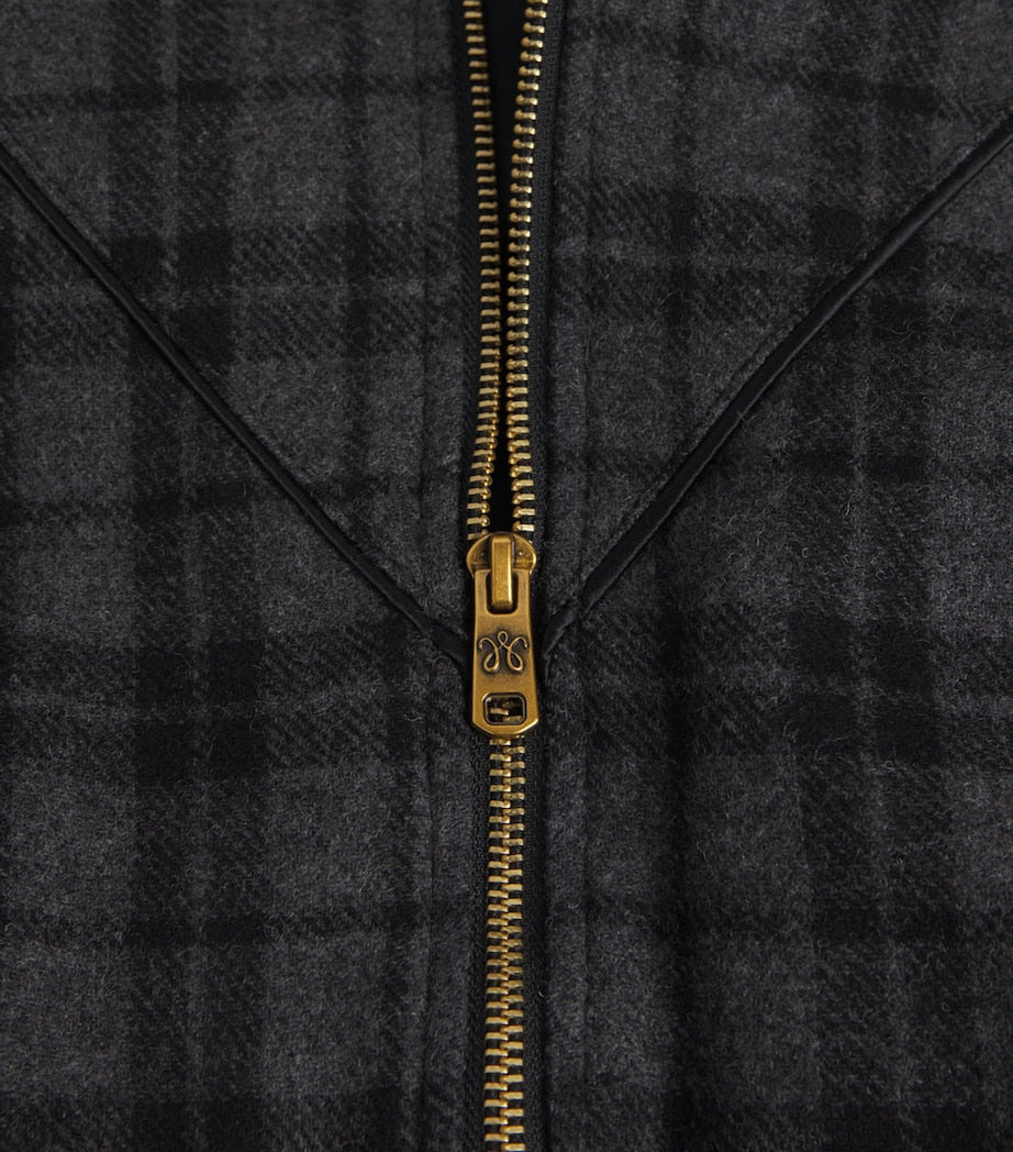 Willy Chavarria never fails to imbue its jackets with a distinct sense of ease and modern appeal – case in point, this wool-blend bomber style. Nicknamed the Ruff Rider style, the piece is crafted from ultra-soft yarns with a relaxed fit and bold gold-tone hardware that cleverly contrast the sartorial check design. Details: