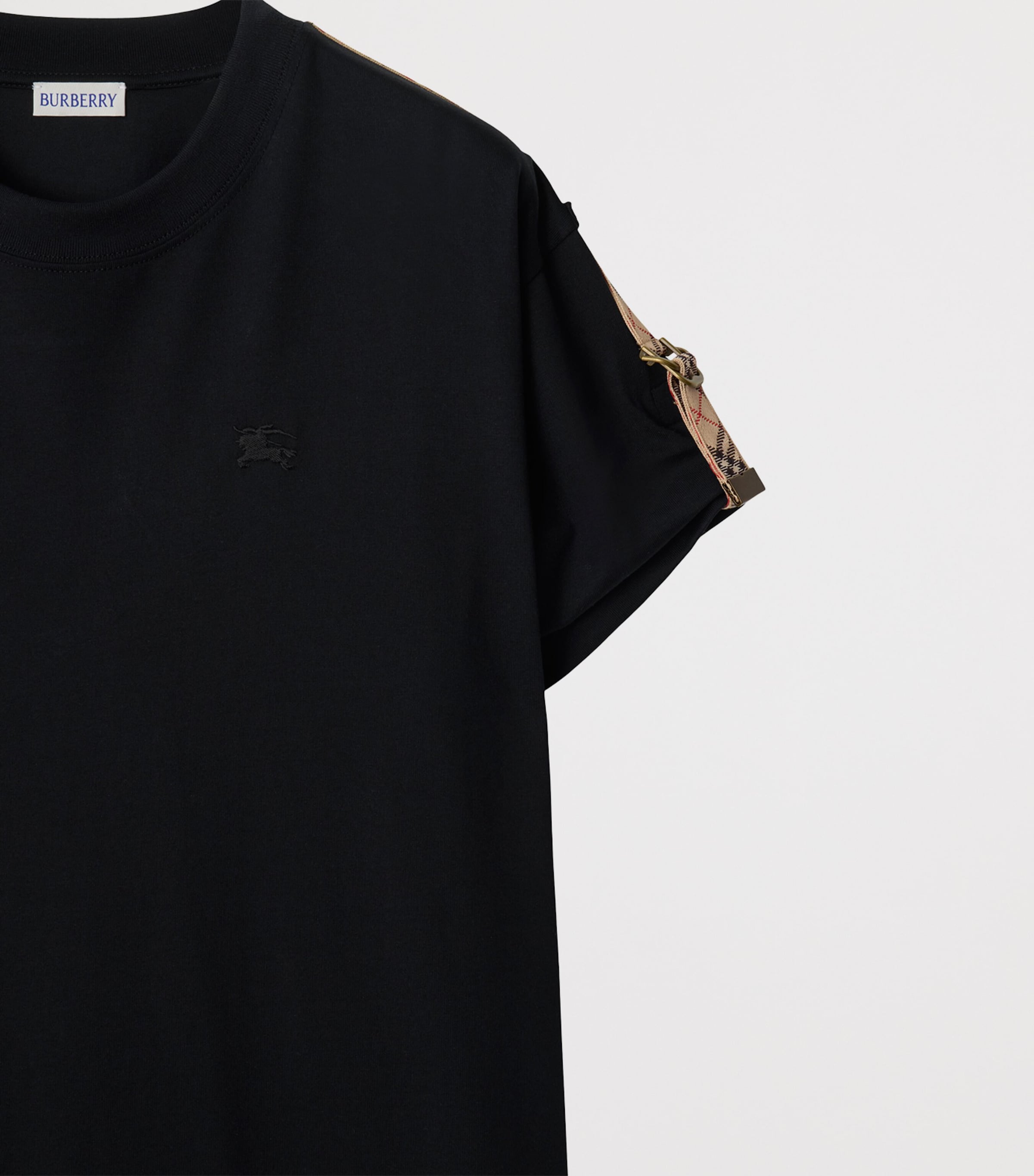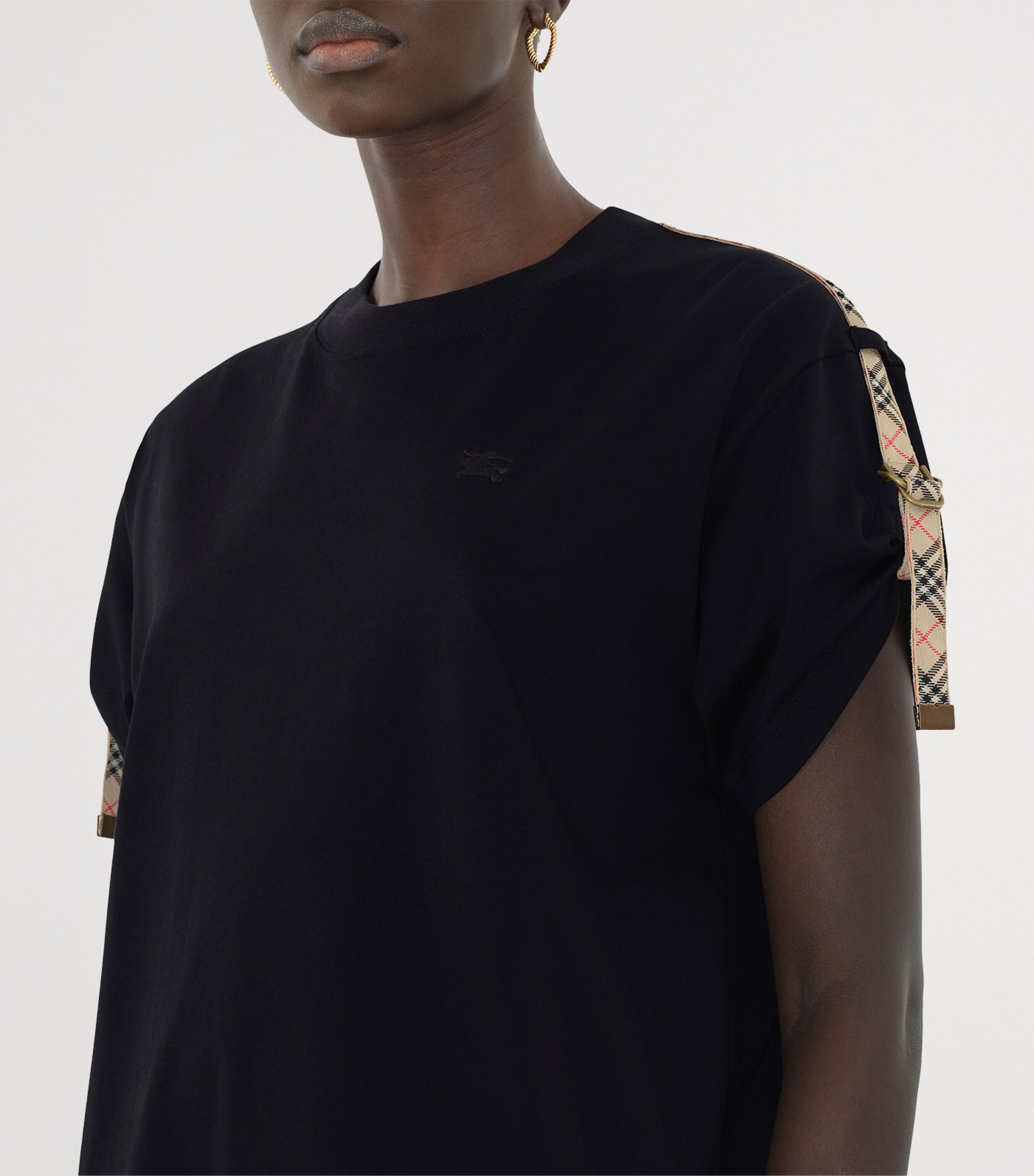 A celebration of British craft, this T-shirt dress is tailored to a relaxed fit and trimmed with the Burberry Check – a motif born in the 1920s and steeped in heritage. The sleeve straps nod to the brand’s trench coat legacy, blending tradition with contemporary design.
