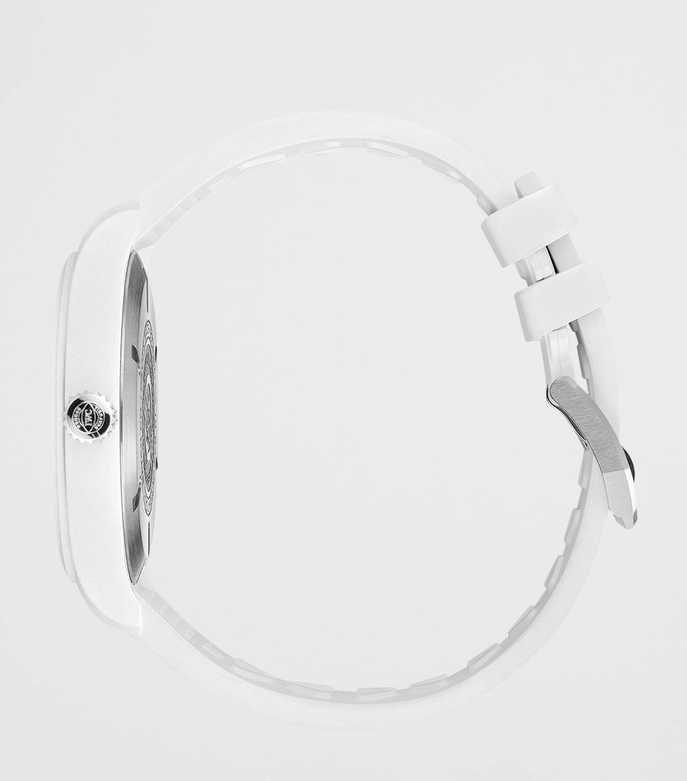 Part of IWC Schaffhausen’s Colours of TOP GUN collection, this Lake Tahoe edition of the Pilot’s watch displays the Swiss brand’s mastery of advanced materials. Ceramic is ideal for a Pilot’s watch due to its highly scratch-resistant and remarkably light properties, but that’s not all. The colour of this iteration has been specified by Pantone and IWC as ‘IWC Lake Tahoe’, taking inspiration from the mountainous area near the U.S. Navy TOP GUN flight school. This, combined with glass secured against air pressure displacement and an iron inner case protected against magnetic fields, makes it well-suited to life in the skies, while its sleek design ensures it’ll become a favourite in your rotation.