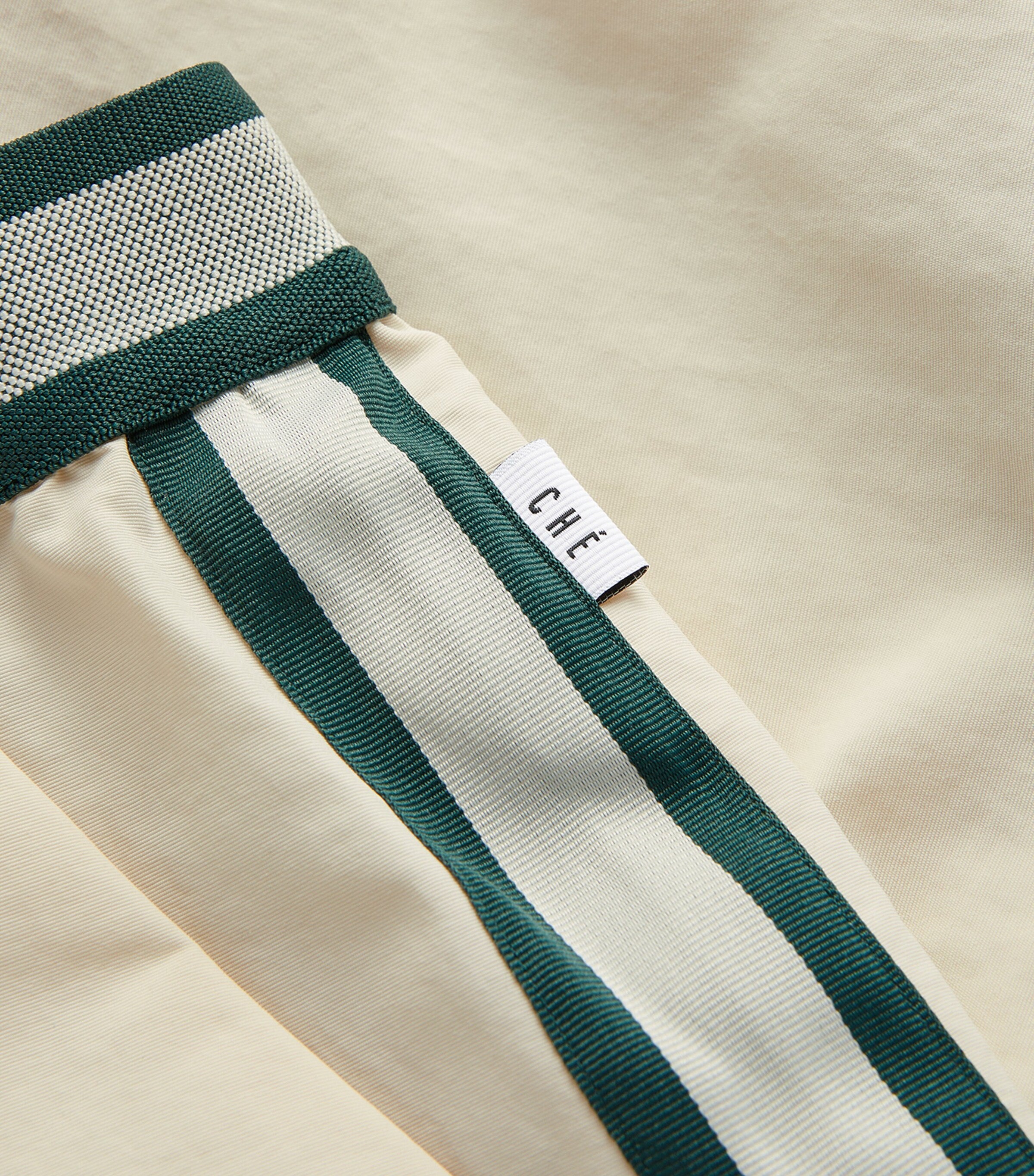 For its Baller swim shorts, Ché takes inspiration from ‘70s basketball styles, creating a boxy shape that bridges the gap between swimwear and casual silhouettes. Fitted with a zip fly, secure zip pocket and a soft mesh lining, this pair only requires a shirt and shoes to take you from poolside to the city streets.