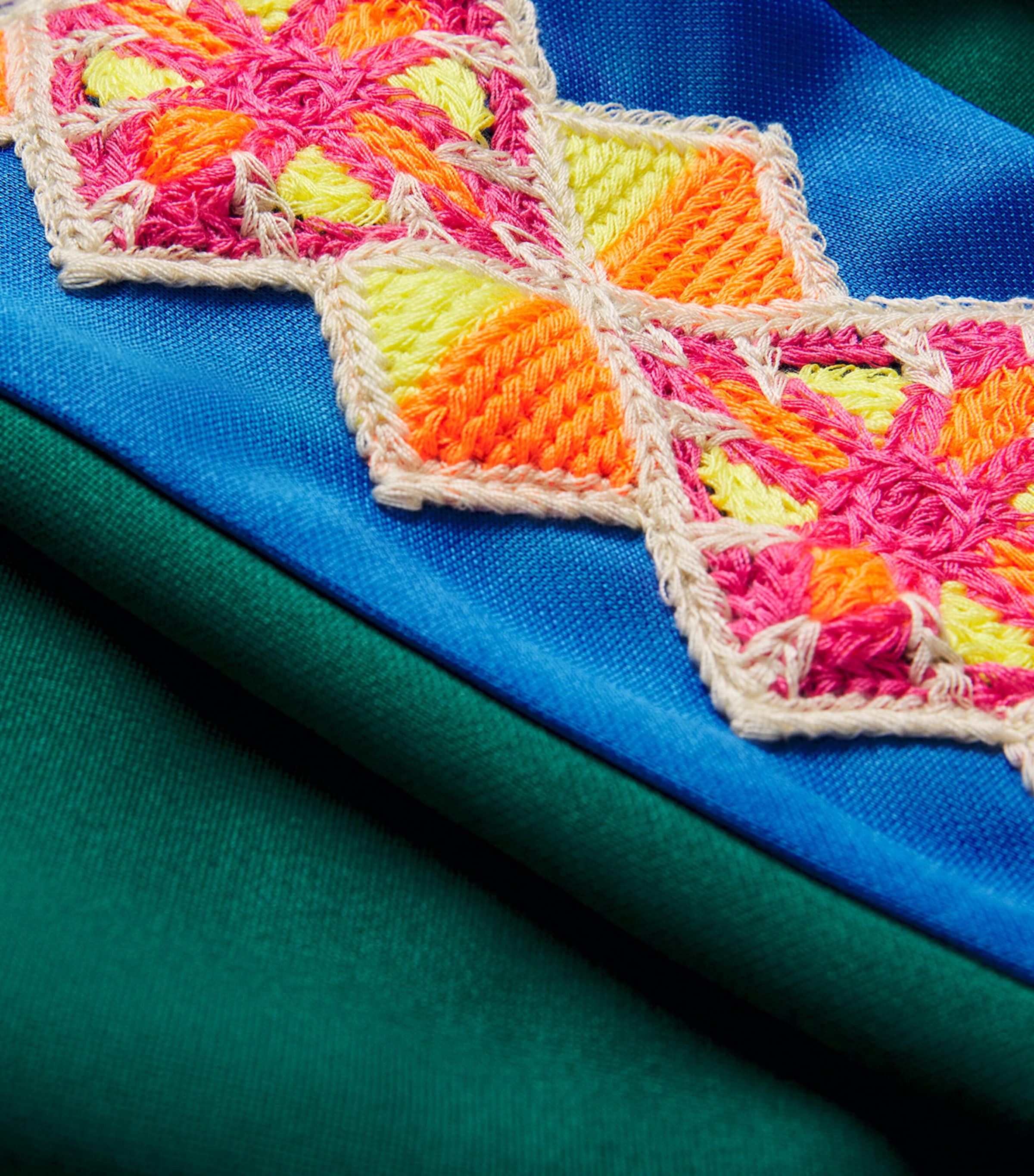 MOTHER’s spirit is unapologetically joyful, a mood woven into every garment. These track trousers come in a bold electric green, accented with a multicoloured Aztec-inspired stripe down the leg for a striking clash of colour and energy.