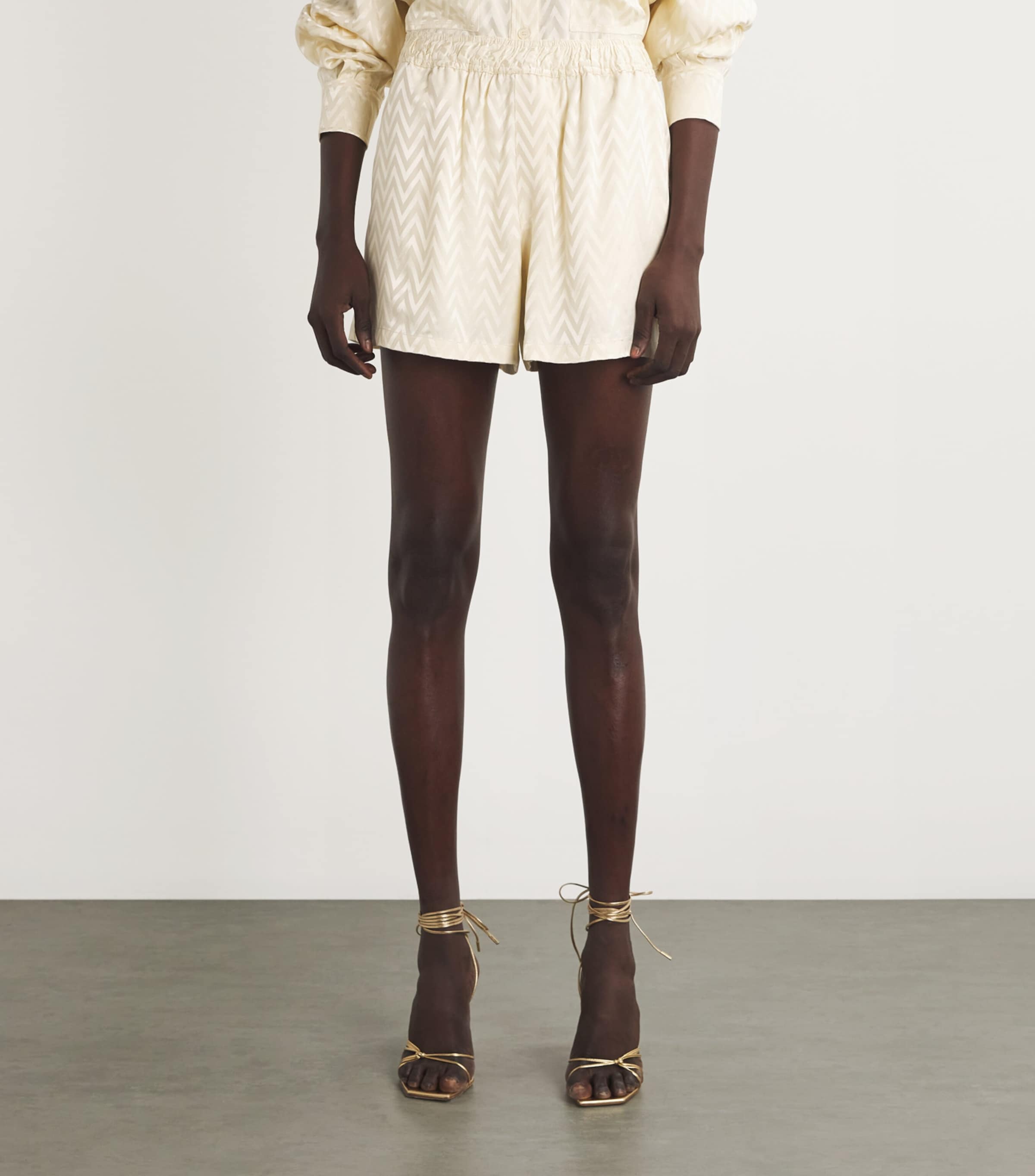 Missoni masters the art of multitasking style with this pair of shorts. A celebration of the House's signature zigzag jacquard, they're crafted in silky fabric for a laidback feel, but dressed up with the coordinating shirt, statement jewellery and skyscraper heels, the resulting look takes you right through to after-dark.