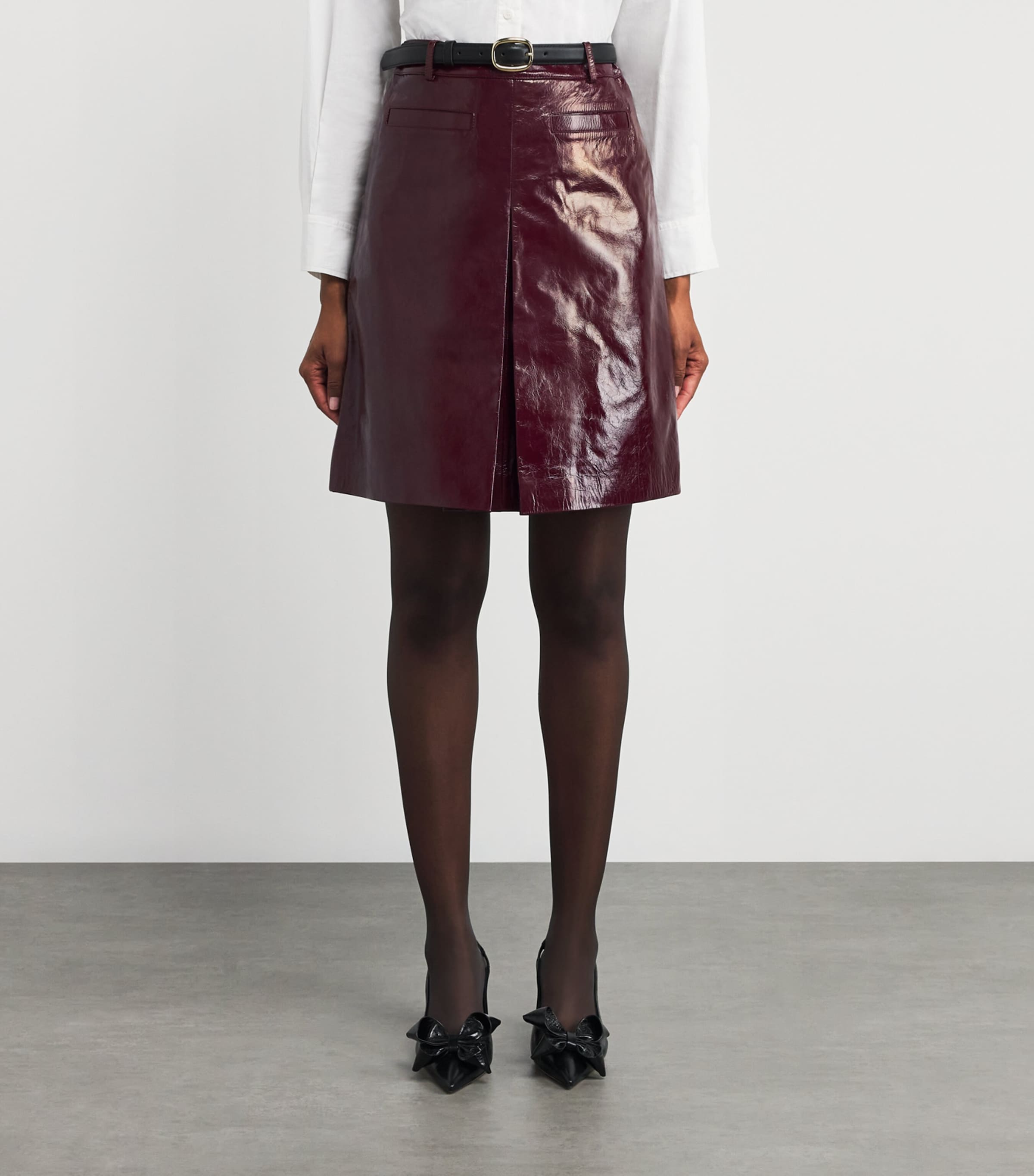 Self-Portrait strays from its usual knits and tweed in favour of something more edgy for its Autumn/Winter 2025 collection. This mini skirt is made from patent sheepskin with a crinkled finish and can be secured with an accompanying belt.