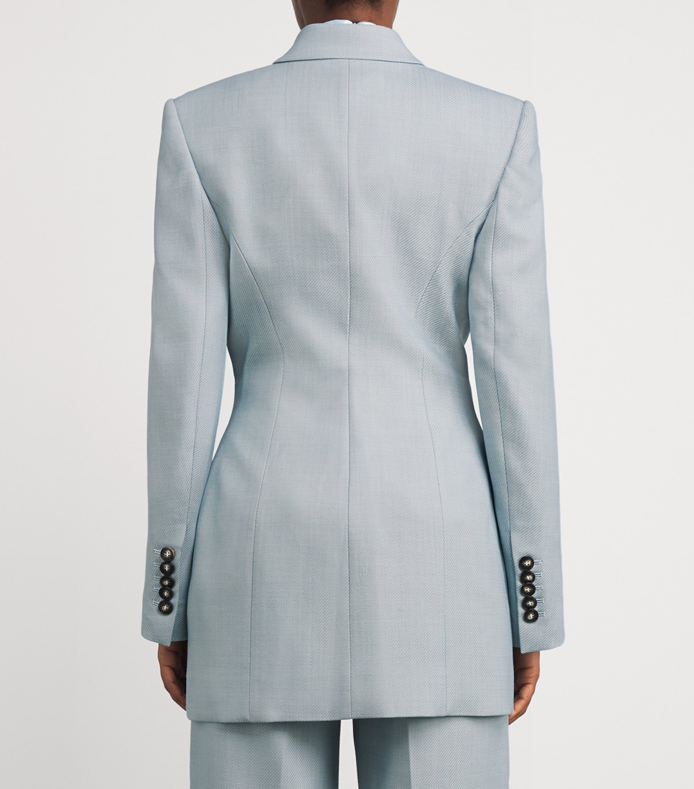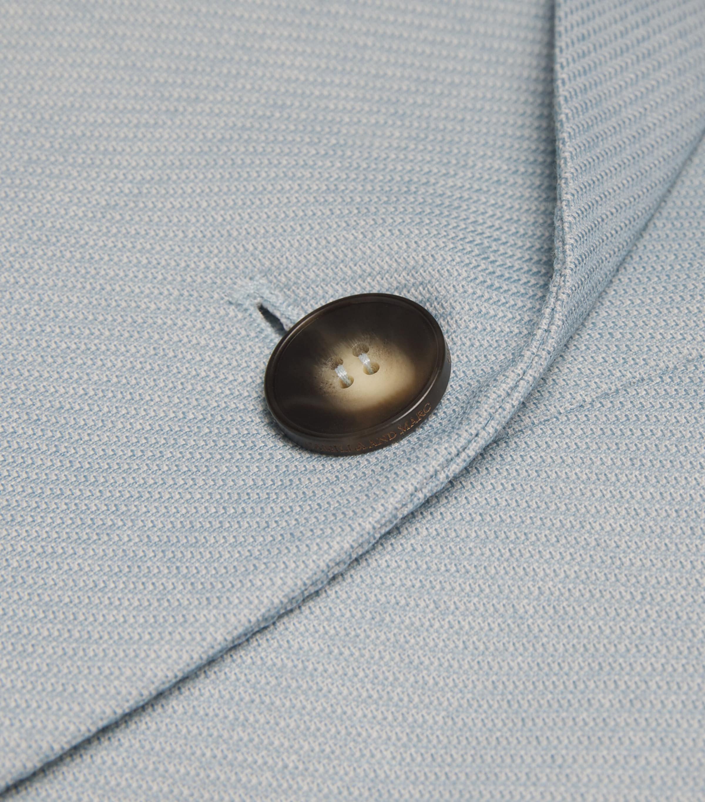 With the Gehry blazer, CAMILLA AND MARC experiments with tailoring and texture. This pastel-toned design features a melange weave reminiscent of Savile Row craftsmanship, with wool blended in for added insulation and a timeless drape.