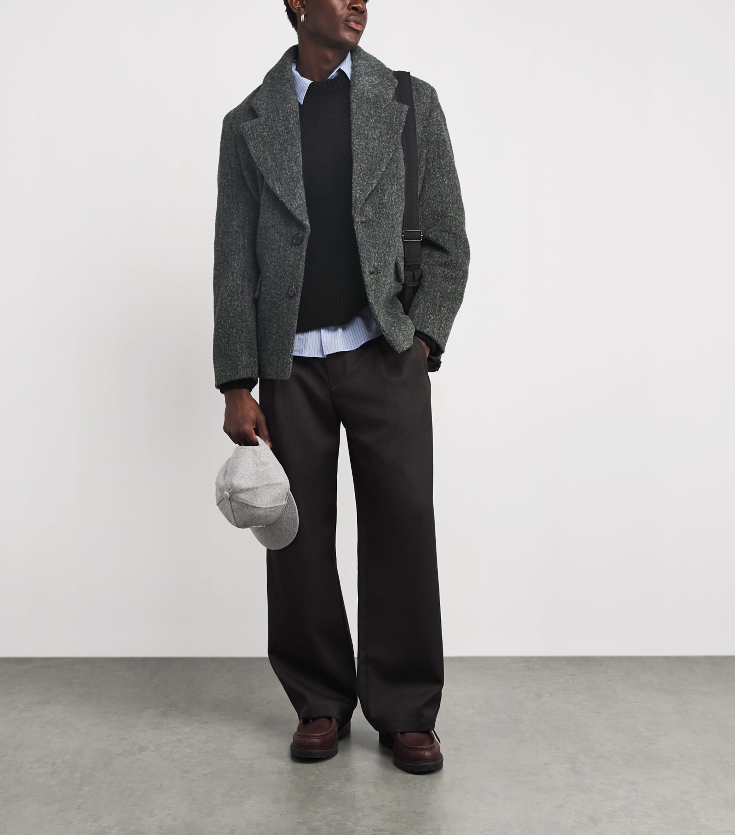 True to about:blank’s stripped-back philosophy, this crew-neck sweater blends tactile grace with a minimalist edge. Knitted from a soft mohair and wool blend, it’s shaped in the label’s signature boxy fit and detailed with exaggerated ribbing for subtle structure, while the back logo print signs off the piece.