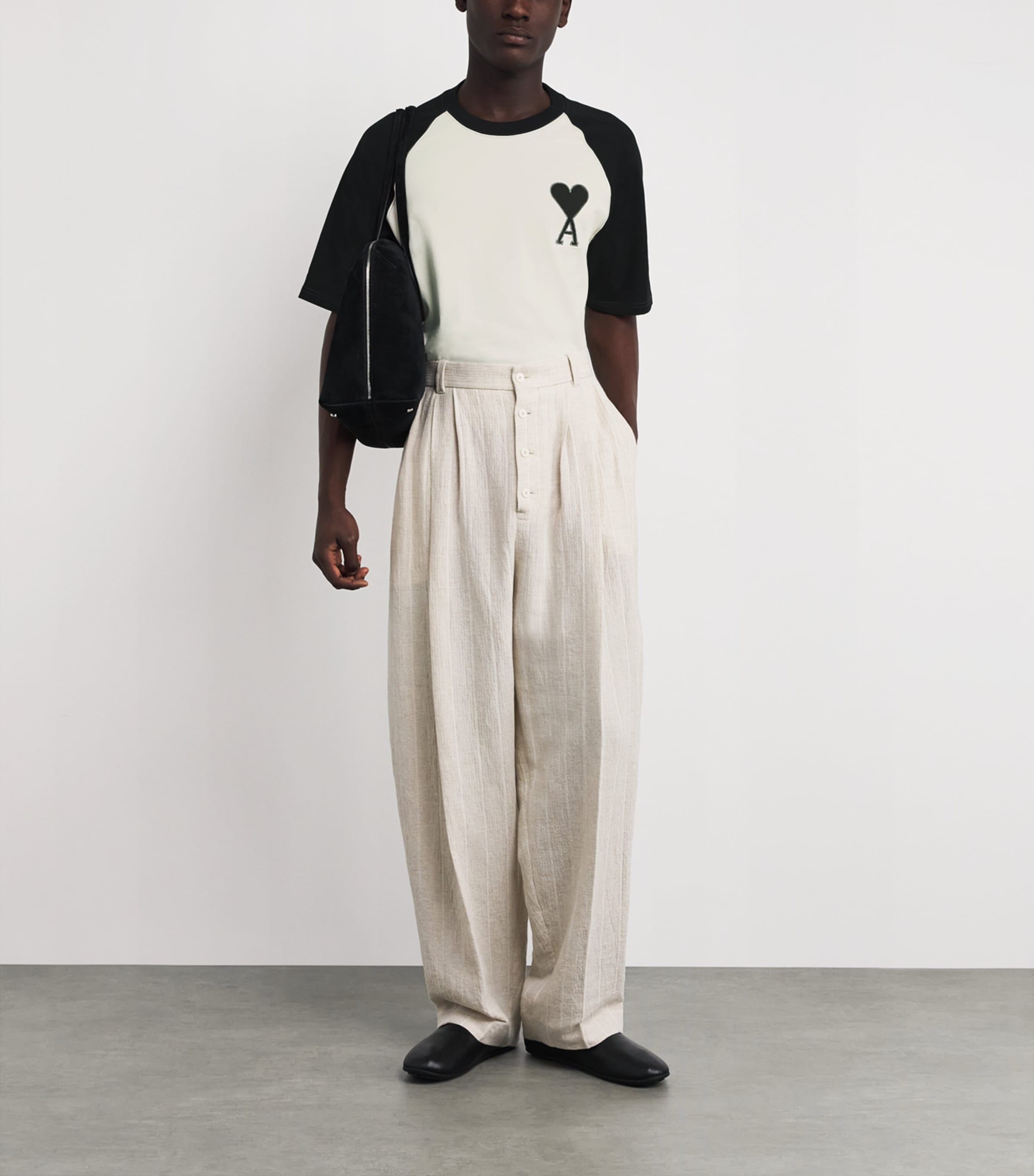 This AMI Paris T-shirt fuses graphic contrast with casual tailoring – a boxy fit and raglan sleeves create relaxed proportions, while the two-tone flannel heart patch on the chest provides a signature focal point. Tonal ami embroidery beneath the back neckline completes this elevated everyday staple.
