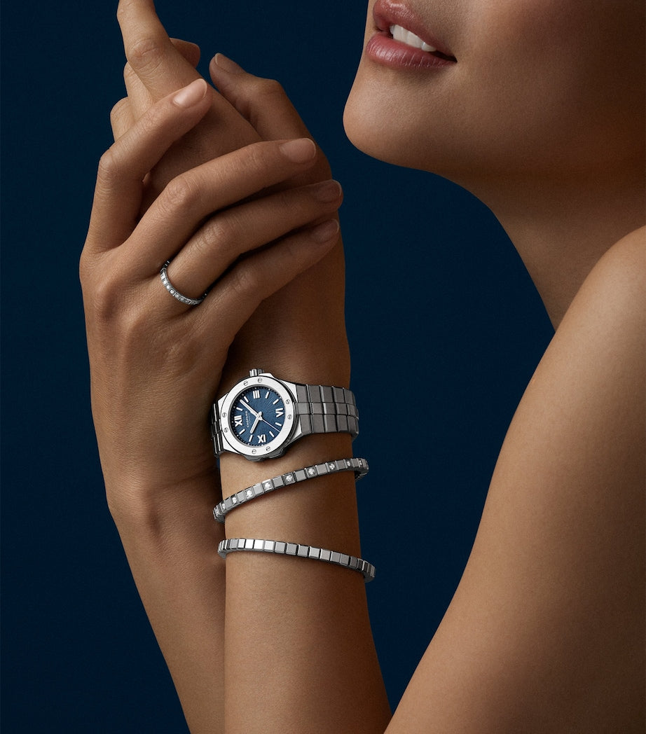 Designed by Chopard’s co-president Karl-Friedrich Scheufele, the Alpine Eagle watch collection is inspired by his passion for the Alps as well as the power of the eagle. Imagined with a light-reflecting Lucent stainless steel strap, the piece is entirely crafted in the brand’s watchmaking workshop, ensuring utmost quality and precision. Boasting a clear sapphire crystal dial with gold-plated Roman numerals and hour markers, it is a timeless design for the modern aesthete.