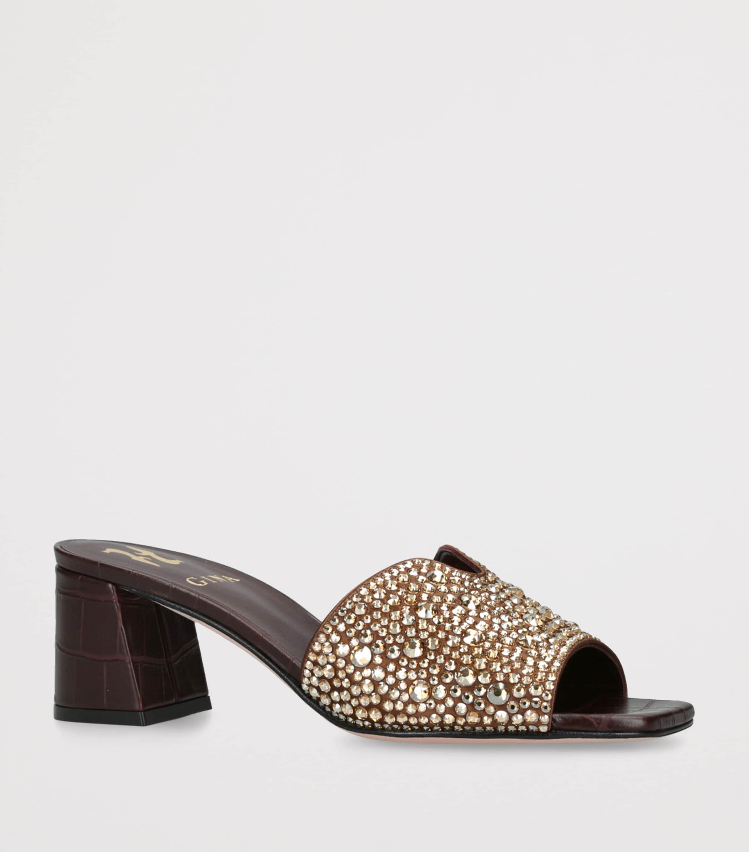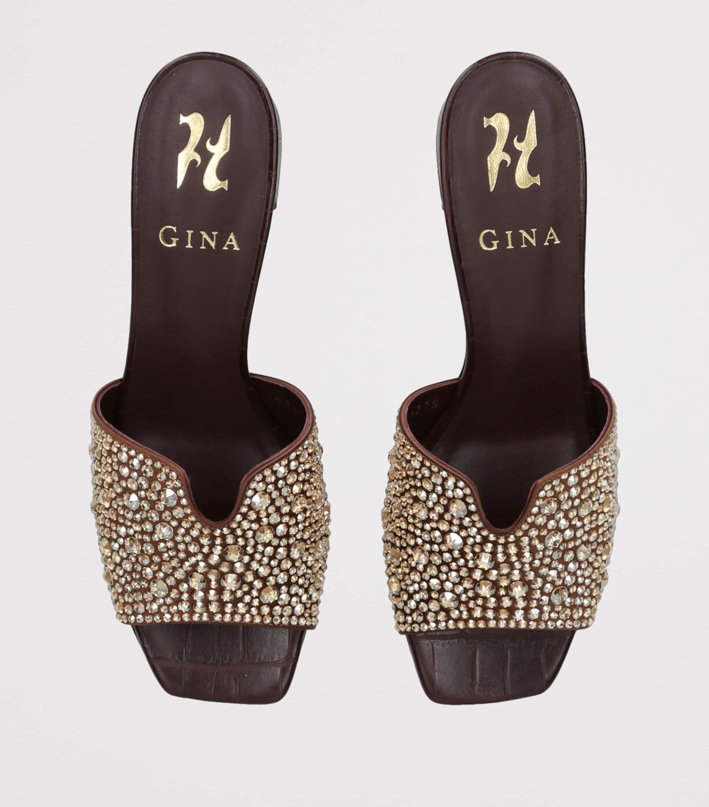 Touting over 70 years of glamorous design, GINA was originally founded in London, UK, where each pair of its shoes is still made to this day. True to the brand’s dedication to dazzle, these Florence heeled mules offer elegance with a masterful hand. Set on a square block heel, this pair features a U-cut vamp completely adorned with Swarovski crystals, making it the perfect backless option for those fine occasions.