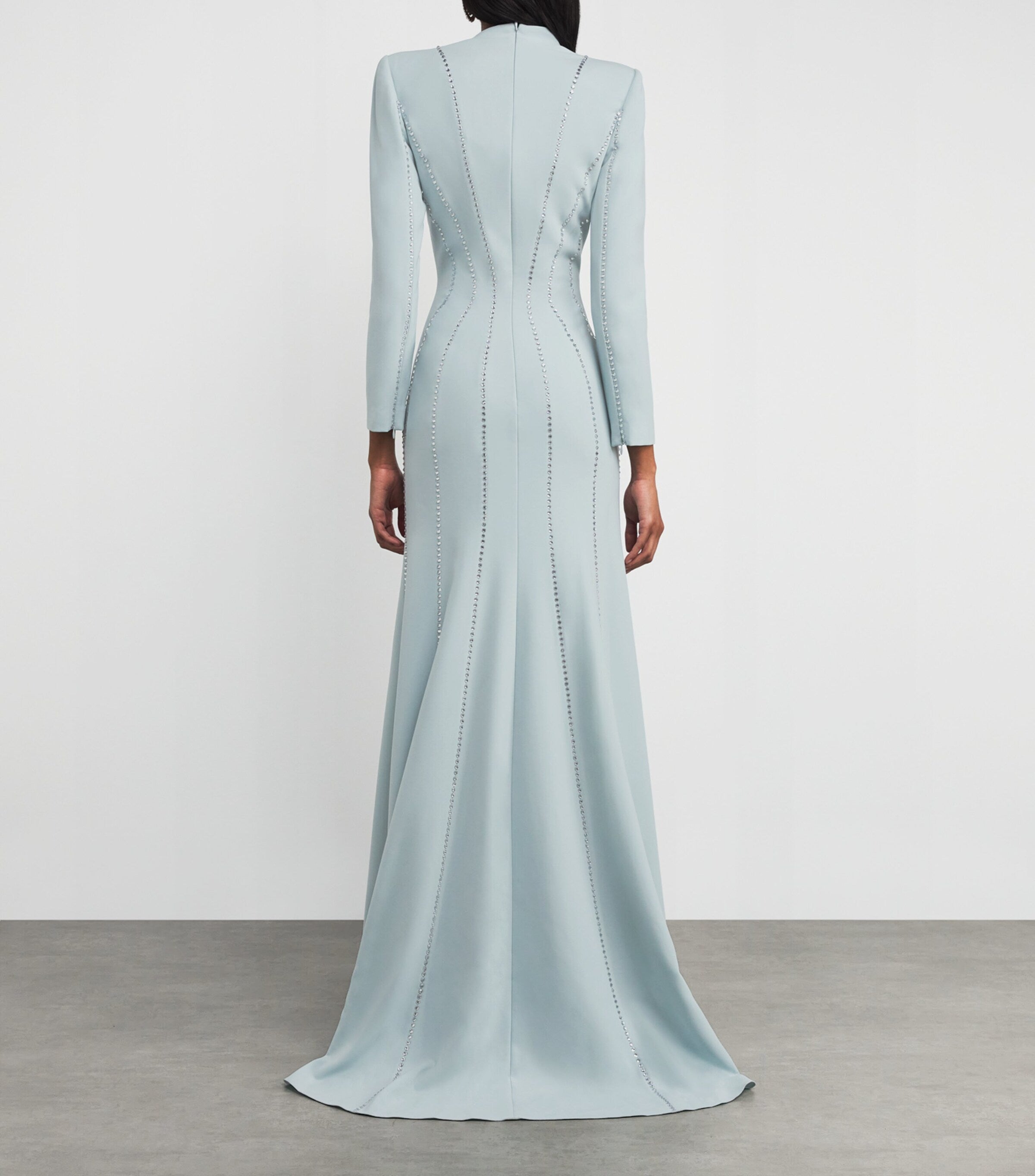 Jenny Packham’s expertise with evening attire shines through every design. The Victoire gown from Jenny Packham is the ideal choice for making a glamorous yet quieter evening statement. Rows of rhinestones run elegantly from the shoulders to the hem, outlining the flattering column silhouette and bathing the entire look in elegance, setting the scene for a night of making memories that you’ll treasure forever. The Tailors at Harrods are available for bespoke alterations in-store or at home (within two miles of our Knightsbridge store). To find out more about the service, please e-mail [email protected].