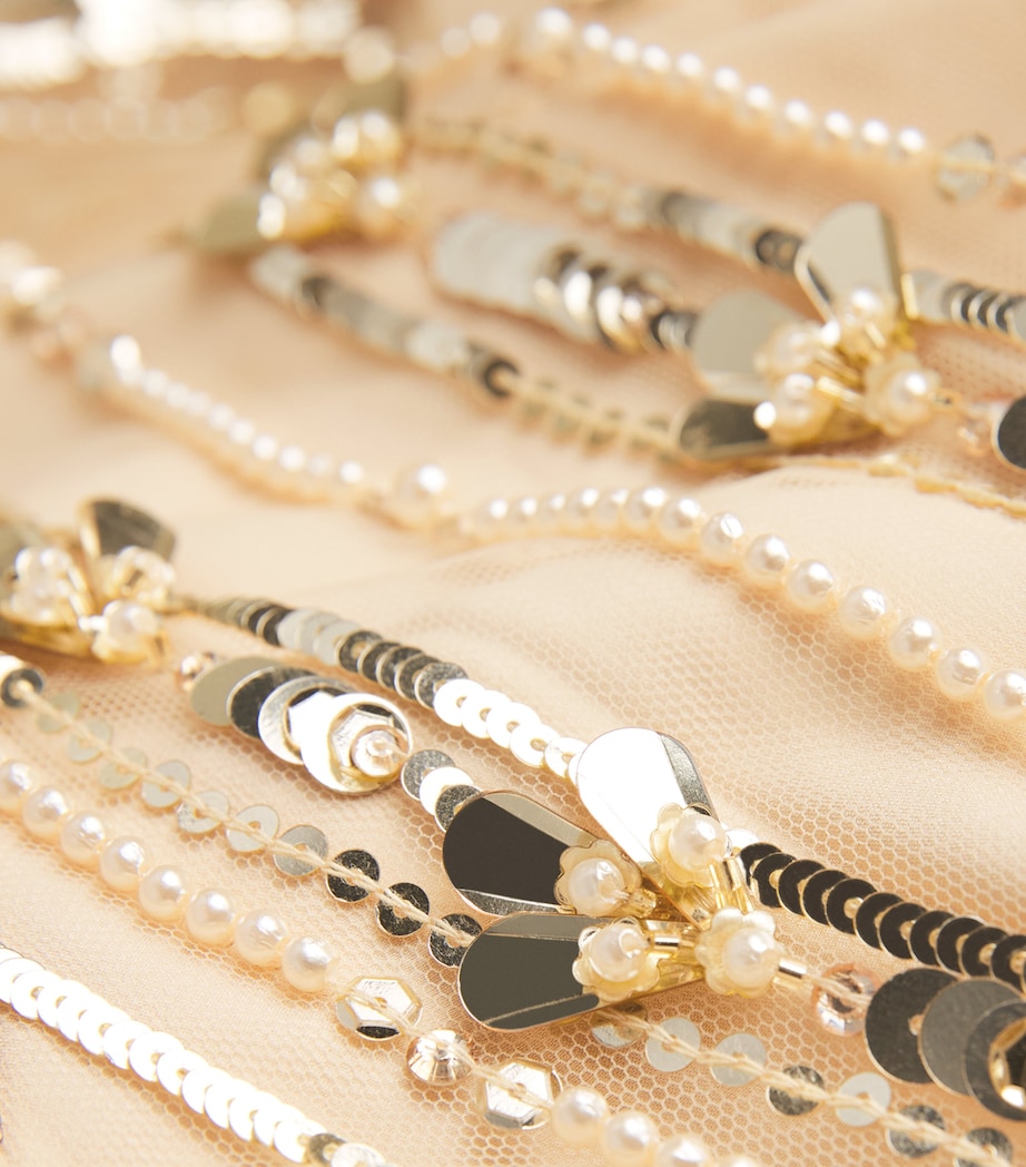 Pamella Roland Gold Tulle Embellished Kaftan Maxi Dress - gold / 6 US