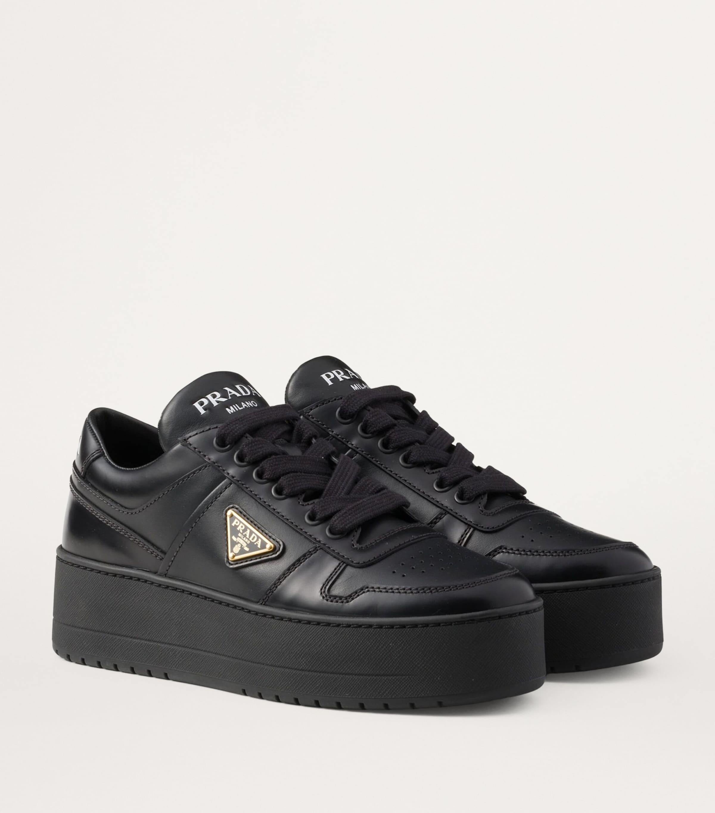 Prada Black Leather Downtown Bold Sneakers 50