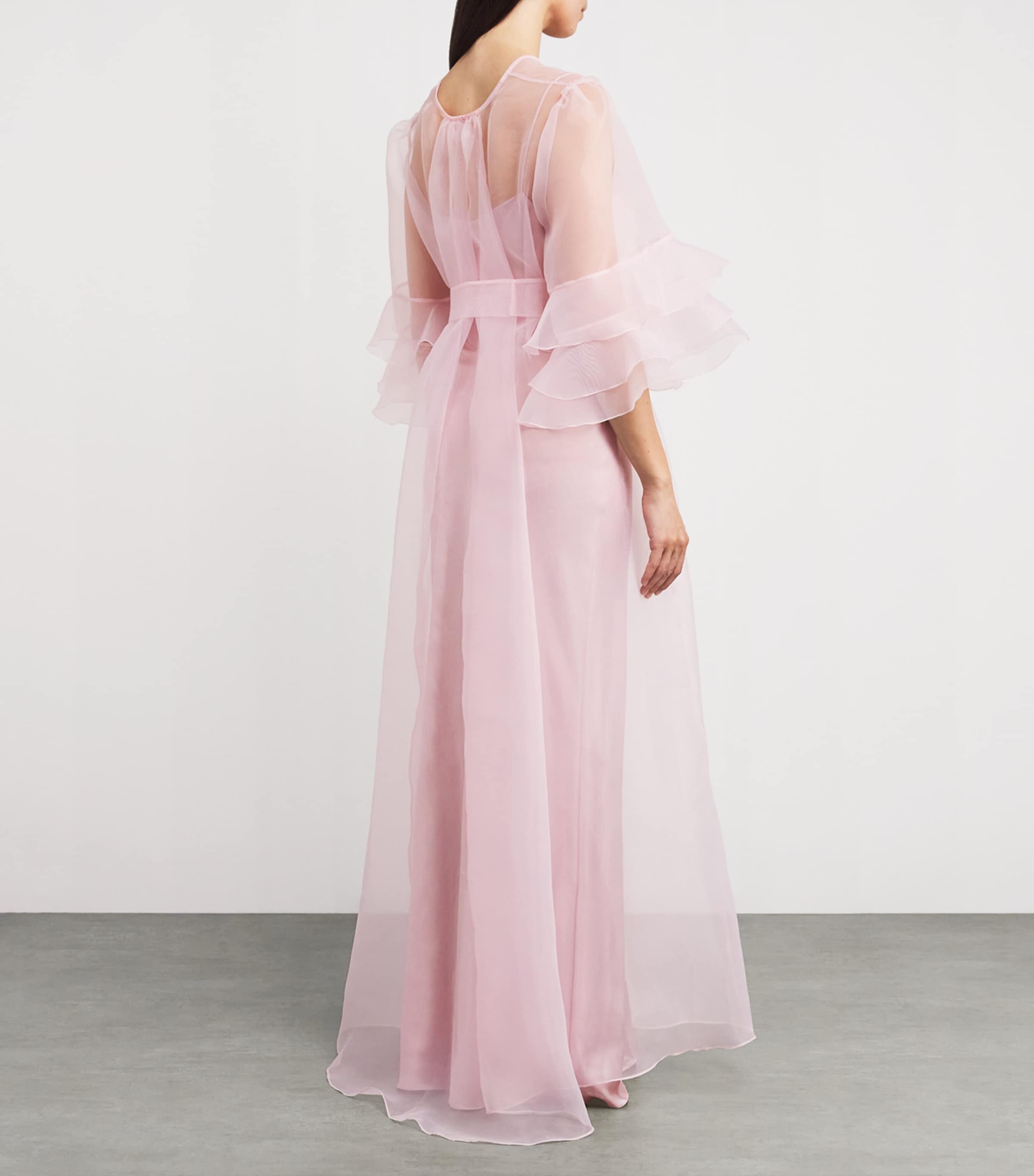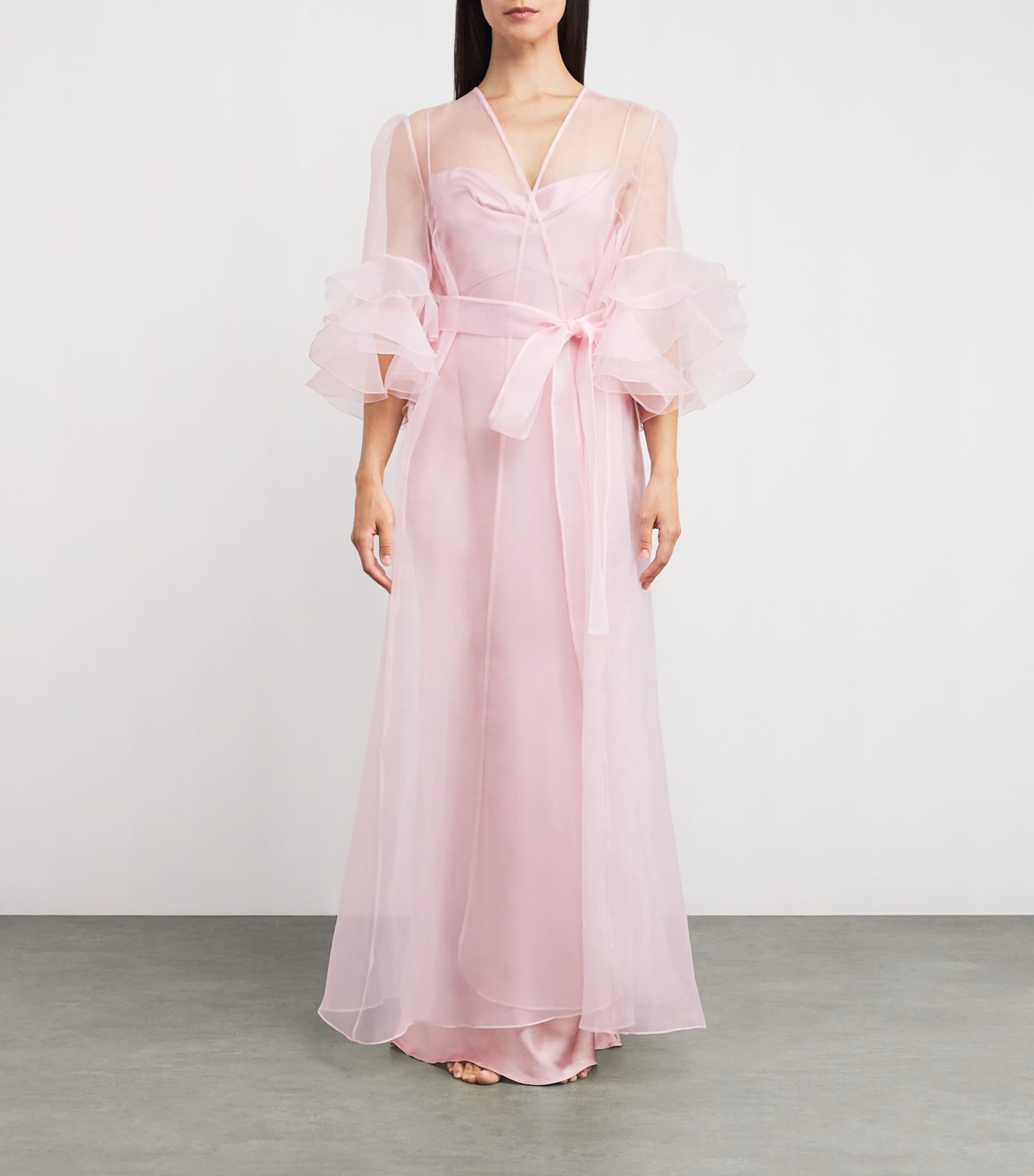 Rosamosario Pink Silk Ruffle Long Robe