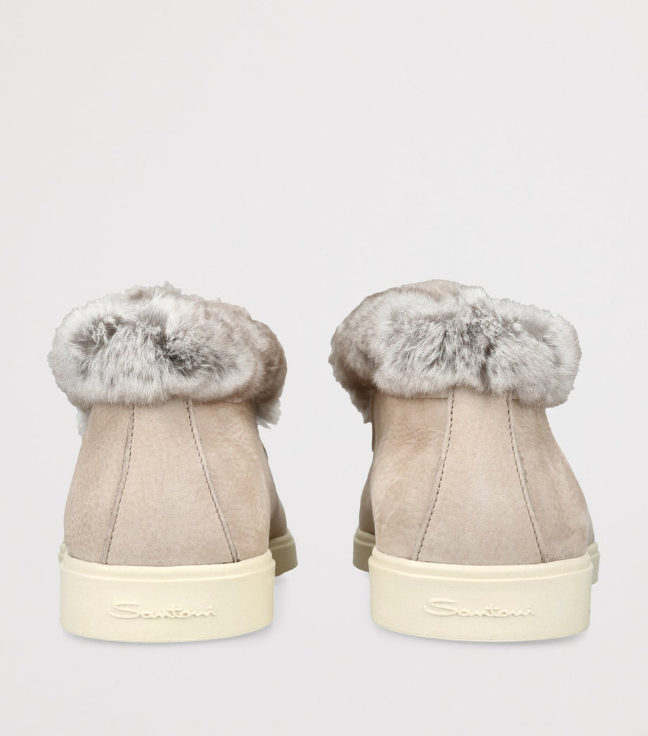 The Hadeel ankle boots are a testament to Santoni’s innovative infusion of contemporary silhouettes and traditional Italian artisanry, meticulously crafted from supple suede into a sleek slip-on design for understated effortlessness. Complete with fur trims for an elevated edge, this pair poises itself as a staple for your autumnal repertoire, while paying homage to the brand’s traditional craftsmanship.