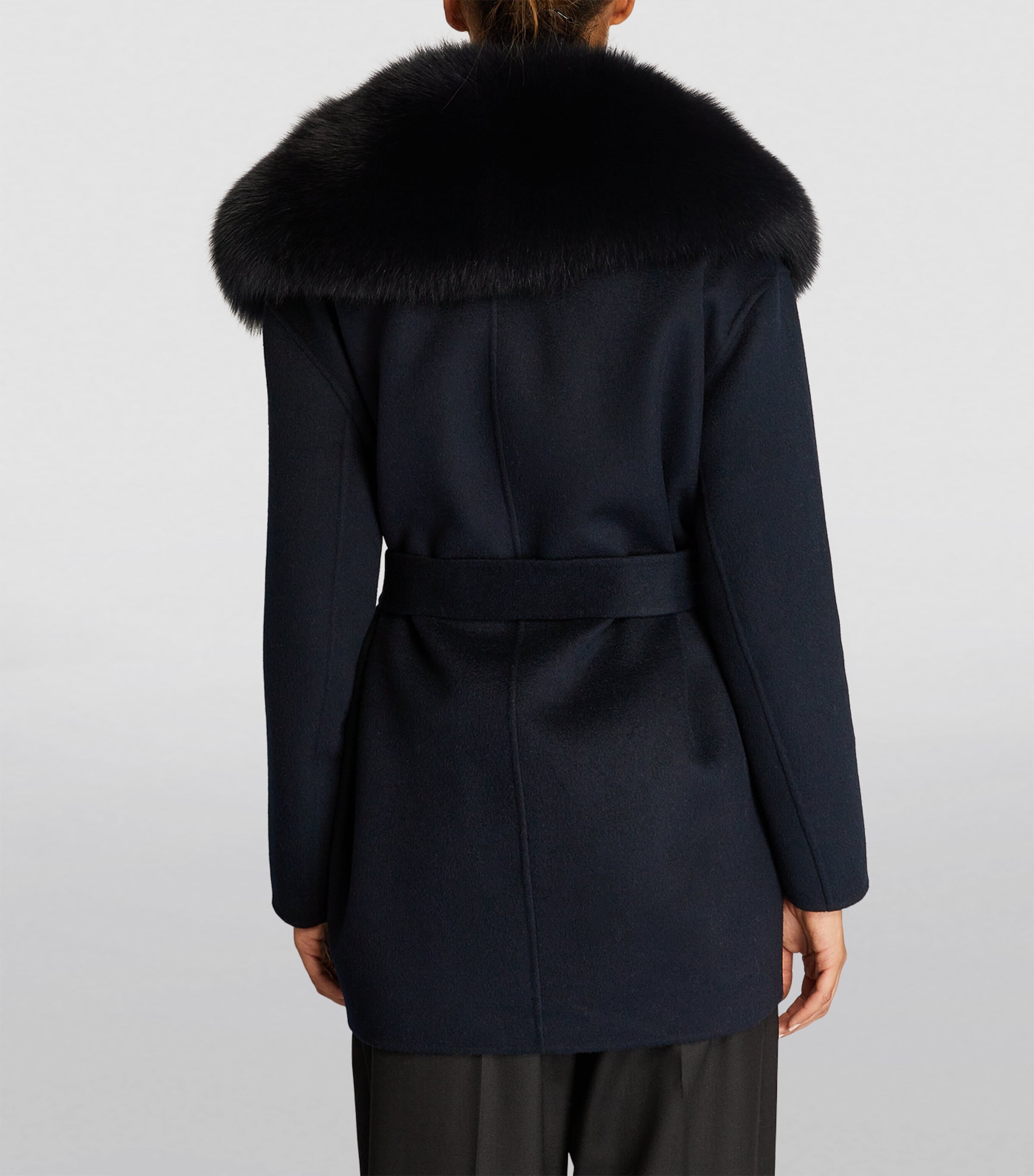 Yves Salomon Blue Wool-Cashmere Fur-Trim Coat