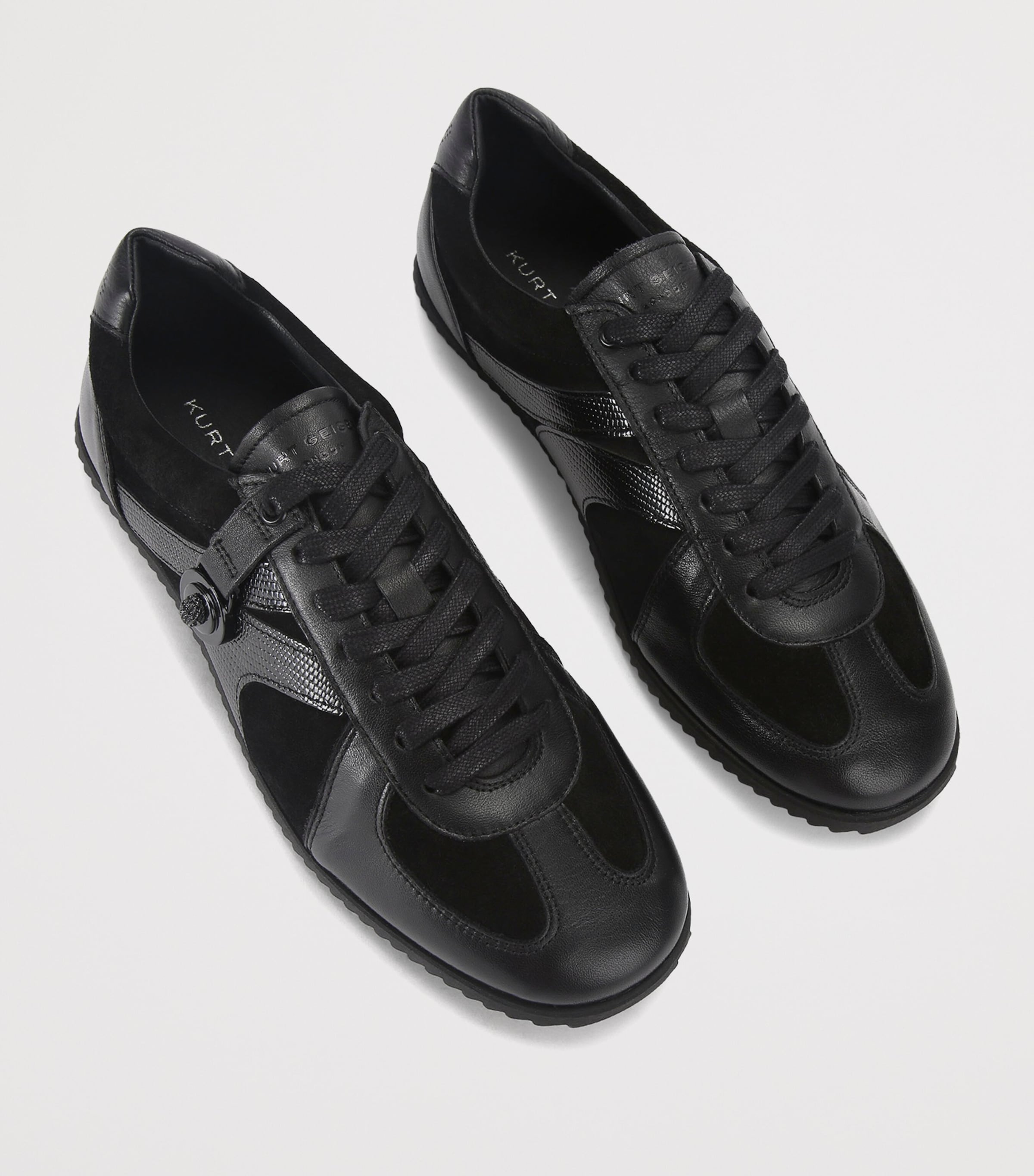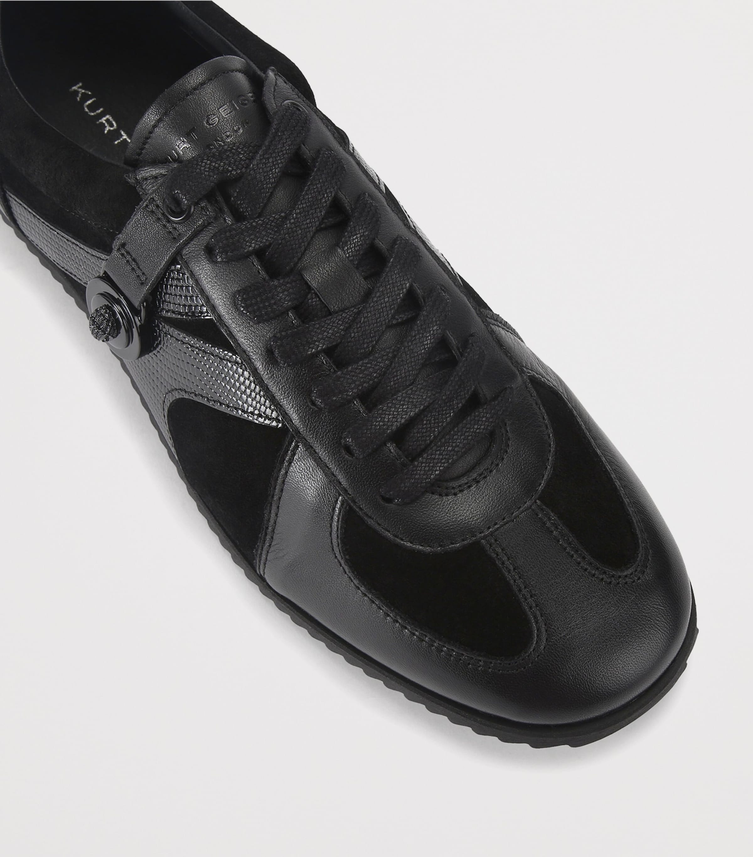 The Eldon sneakers from Kurt Geiger London draw inspiration from several eras of traditional sporting attire. The sleek leather profile features a streamlined shape with monochromatic panels that gently intersect. This pair promises to transcend seasons and slot into your capsule wardrobe with ease.