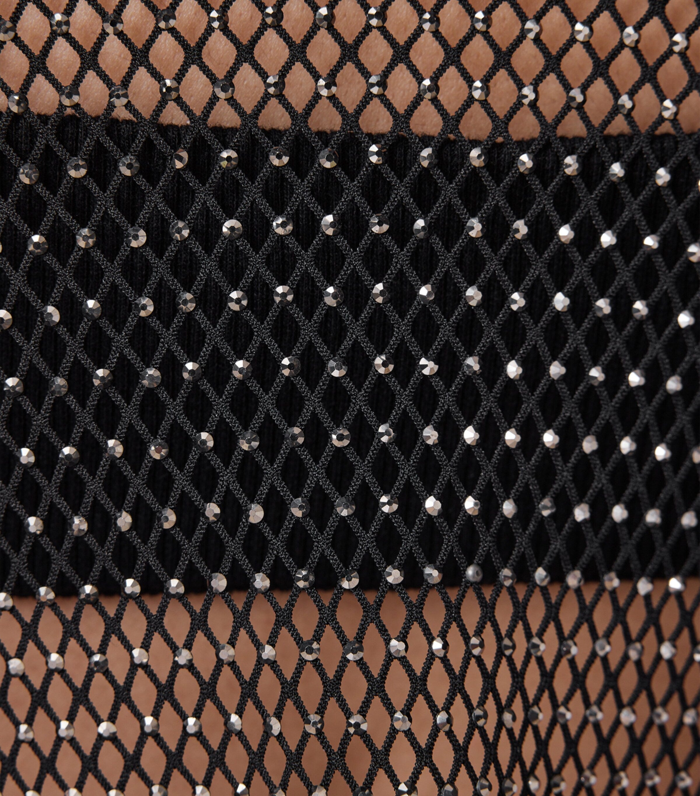 Made from mesh inspired by fishnets and adorned with glittering diamanté gems, the Calytrix crop top blends evening sparkle with AllSaints’ customary East London-inspired edge. Feeling daring? Style it without the internal jersey bralette and add your own pop of colour underneath.