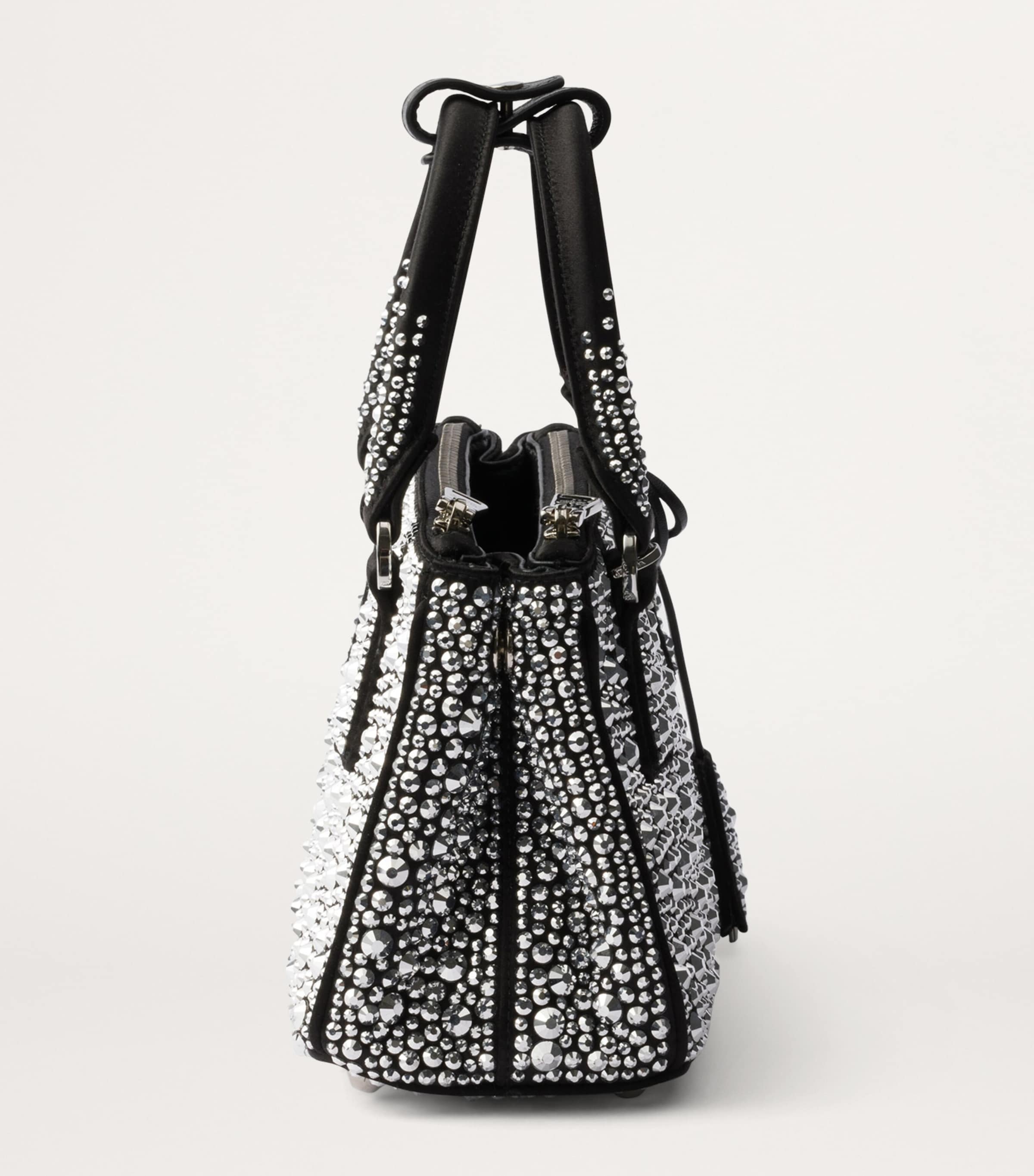 Metallic Micro Satin Crystal-Embellished Galleria Top-Handle Bag
