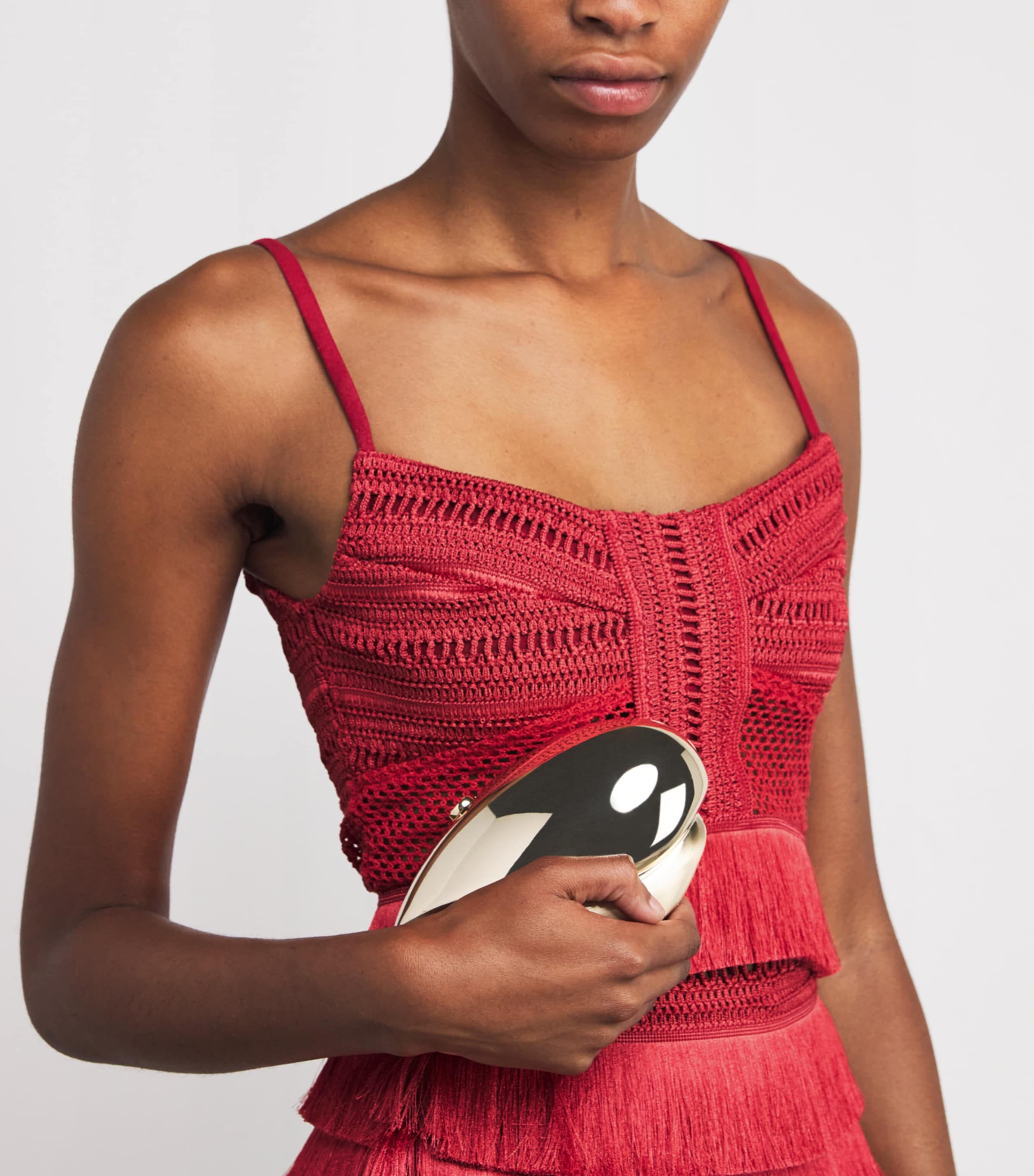 Founded on sophisticated and glamorous silhouettes, PatBO infuses traditional Brazilian craftsmanship into its vision of assured femininity. Defined by intricate crochetwork and fine fringing, the Radiant crop top gives each movement a sense of elevated drama.