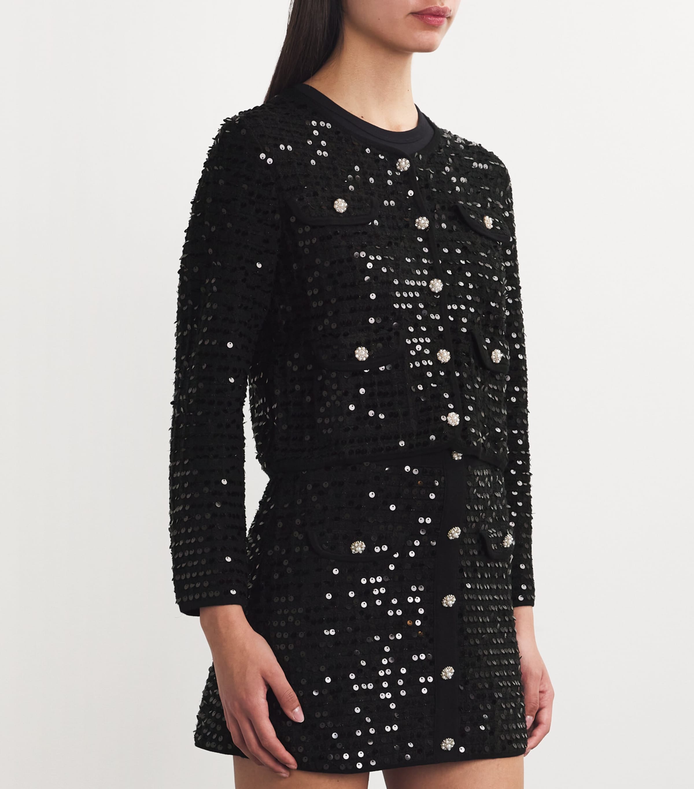 An elegant piece with that coveted Parisian flair. Even without the sequins, this cardigan from Maje would be a showpiece. However, with their addition they take this cardigan to new heights, refracting the light and adding a touch of sparkle. It’s perfect for covering your shoulders when wearing a sleeveless dress, or for adding glimmer to a daytime look.