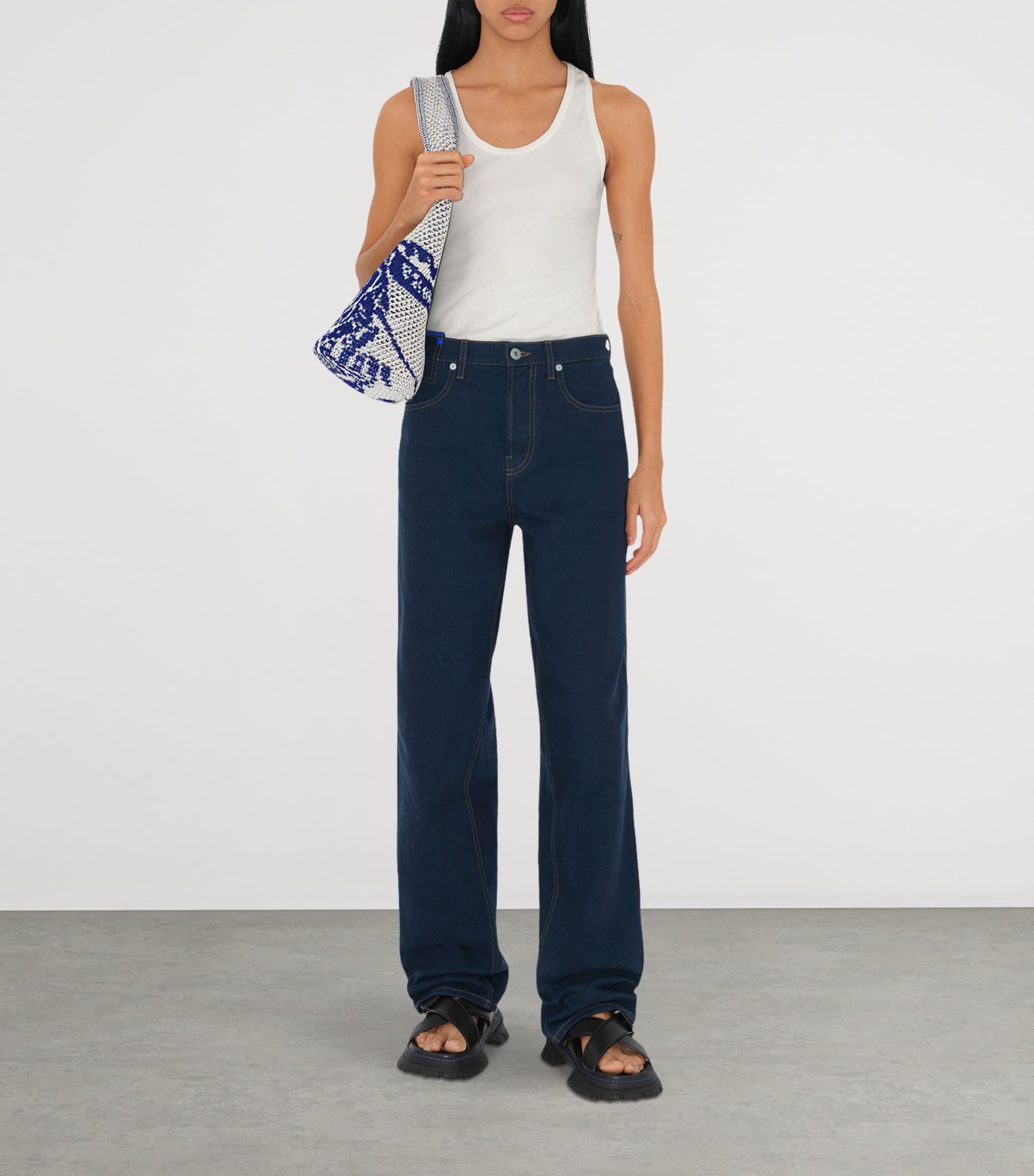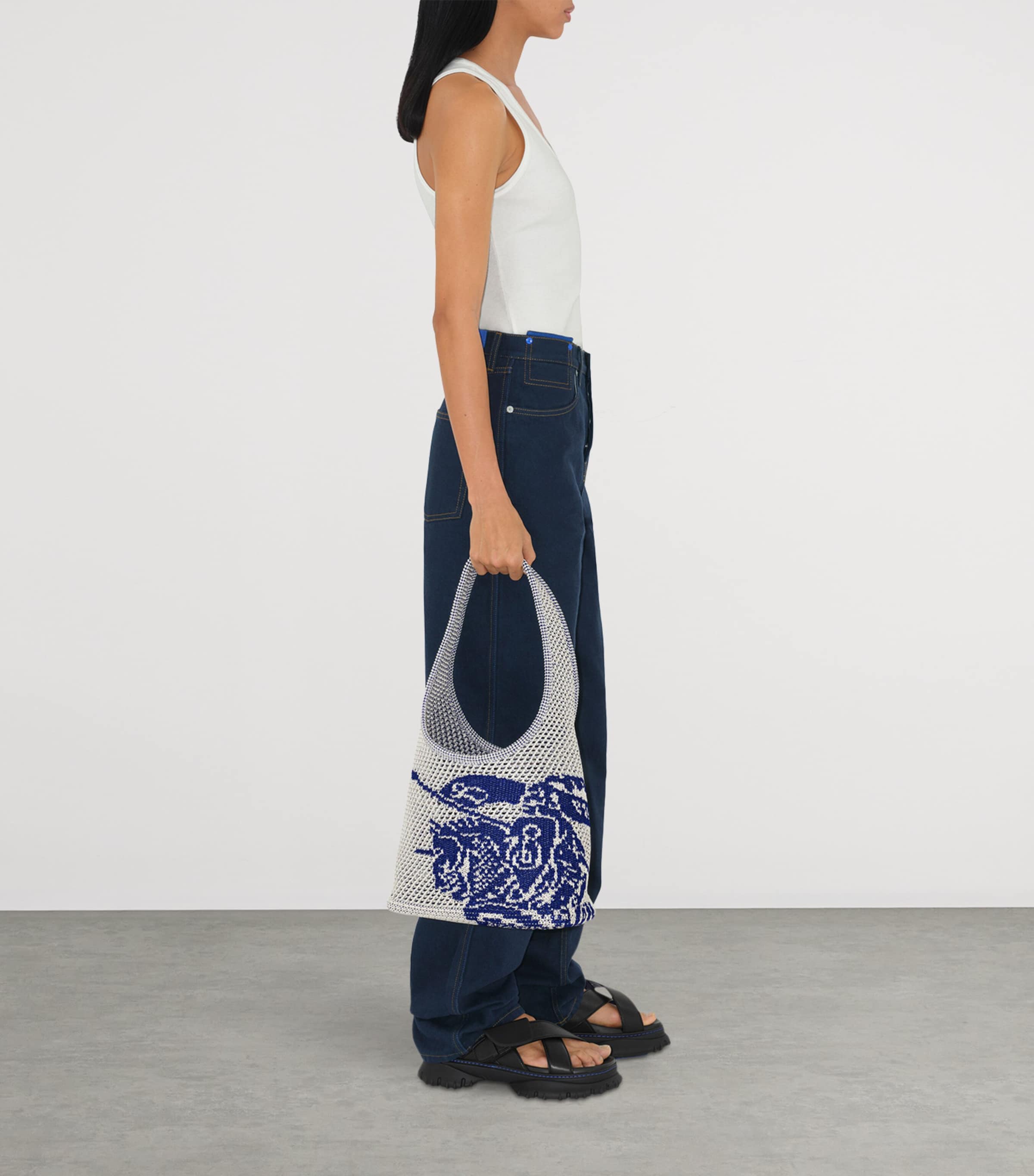 Since Daniel Lee took the helm of storied British House Burberry, new life has been breathed into historic motifs from its archives. The most prominent and striking example is the Equestrian Knight Design – the logo was first introduced after a crowd-sourced competition in 1901. Here, the brand applies it in its signature blue hue to a crochet bag, perfect for summer and holiday wear.