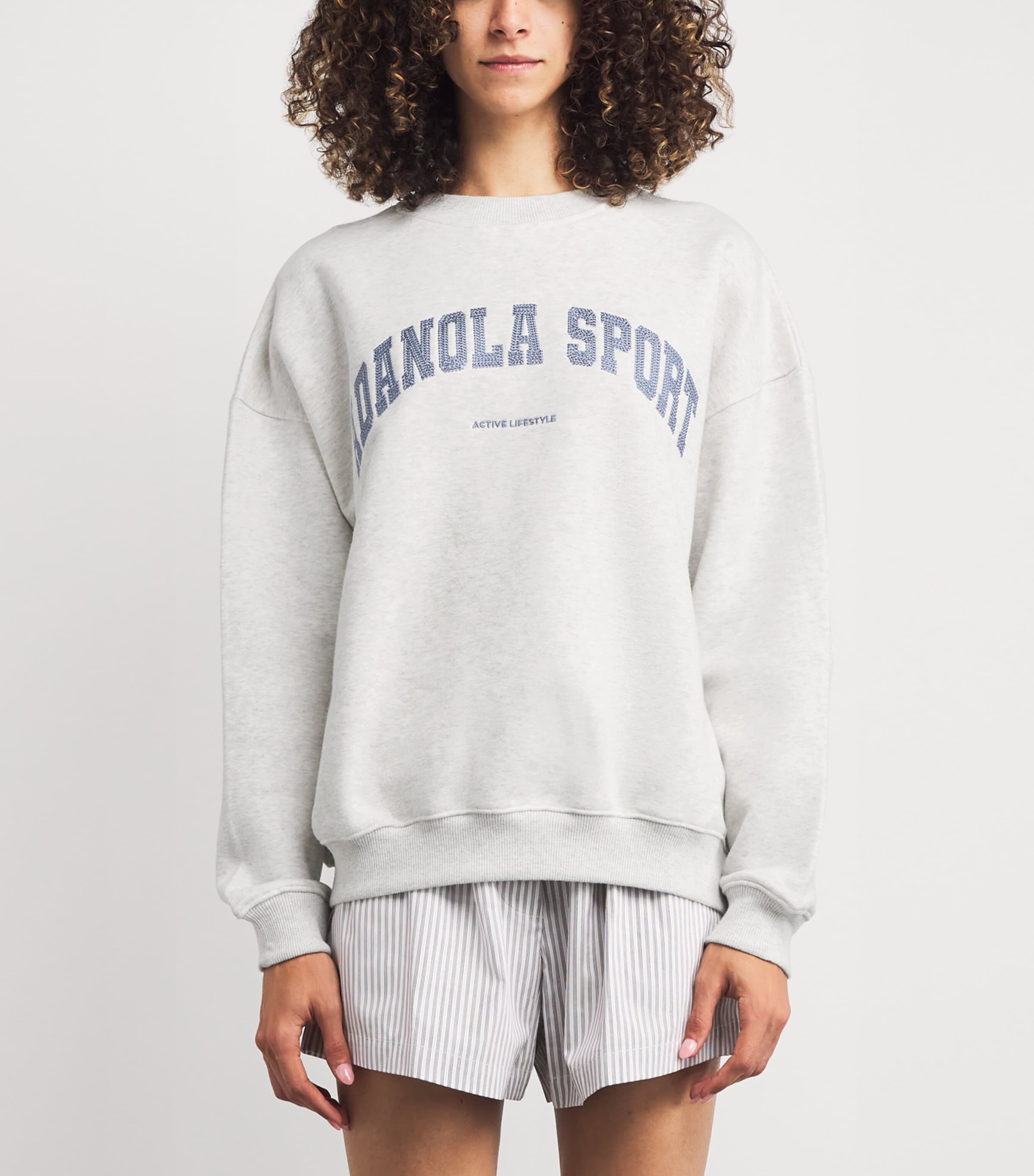 Adanola Grey Organic Cotton Varsity Chainstitch Sweatshirt