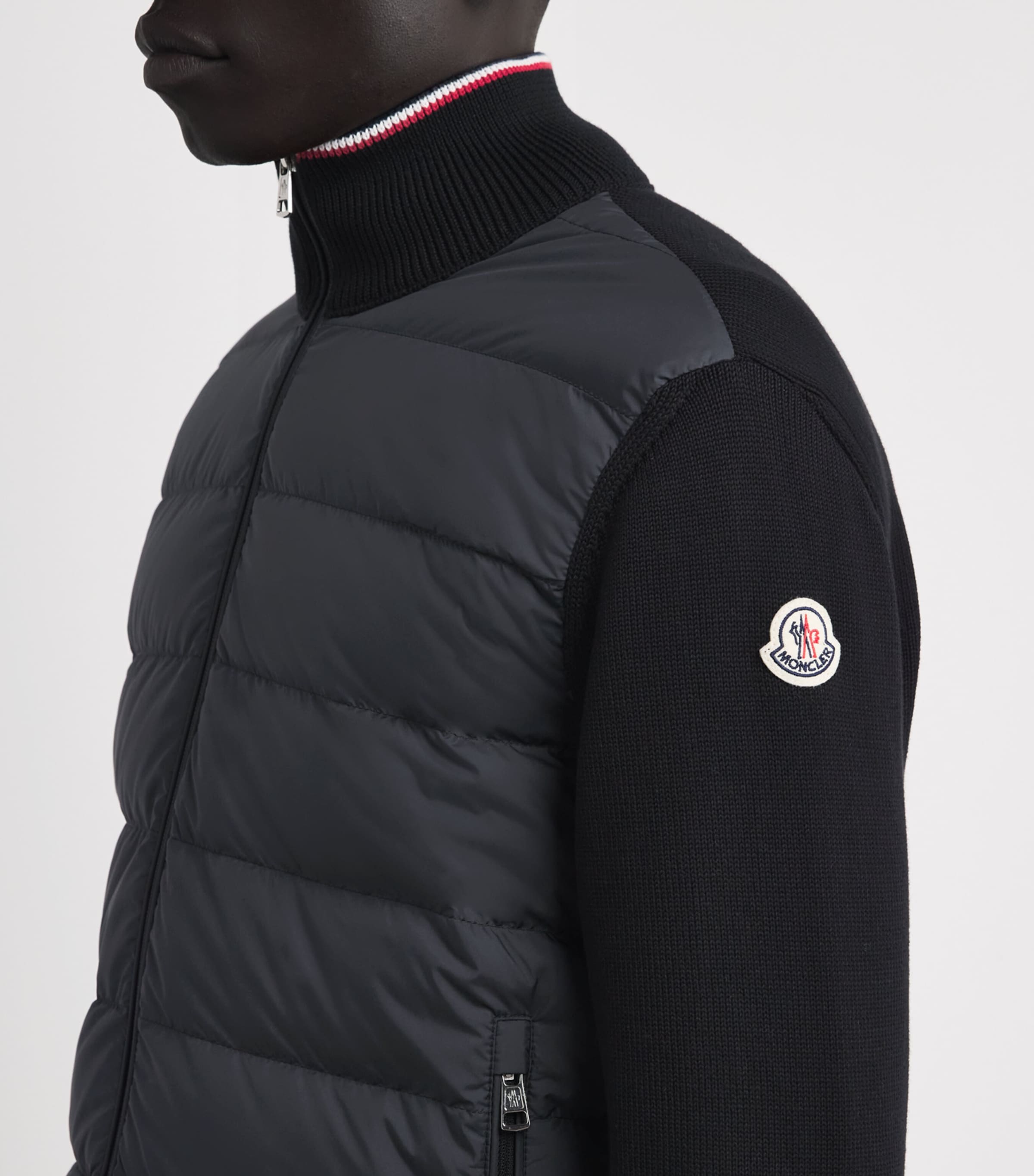 Moncler puts its heritage on display. Making a name for itself by supplying the French Winter Olympics team with equipment, Moncler has upheld its outerwear expertise over the years through sublime layers such as this cardigan. Filled with down and feather for optimum comfort, the piece is finished with a trim of the tricolour at the neckline for a subtle hint at its origins.