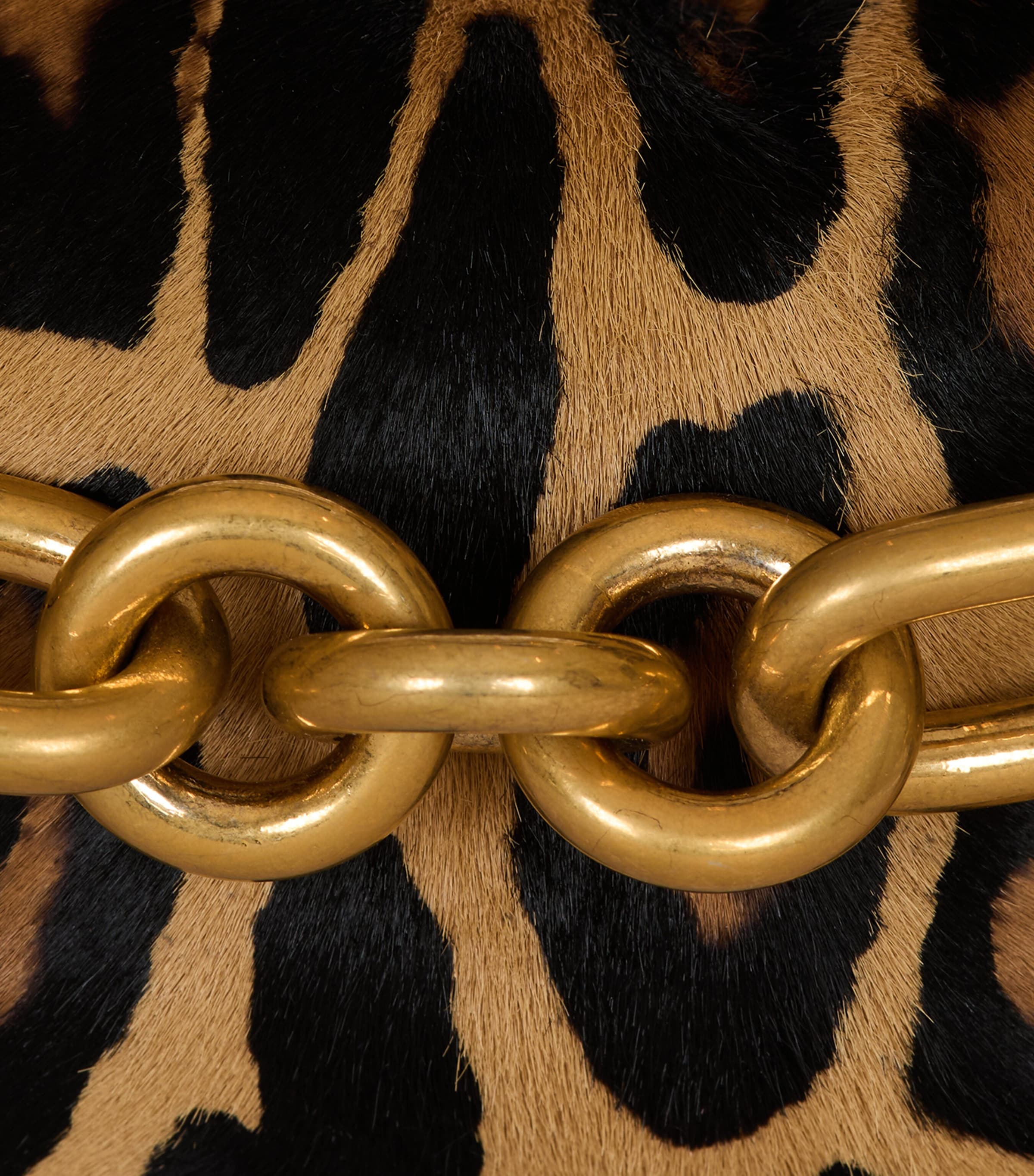 A theme of fearlessness and resilience runs throughout Balmain’s latest collection – an ode to the label’s unwavering commitment to stepping outside fashion’s conventional bounds. Olivier Rousteing’s motif of choice for the Sync collection is statement hardware, drawing heavily from utilitarian codes in the label’s ’50s archives. This shoulder bag embodies that vision, featuring a bold gold-tone chain that transforms function into fierce decoration.