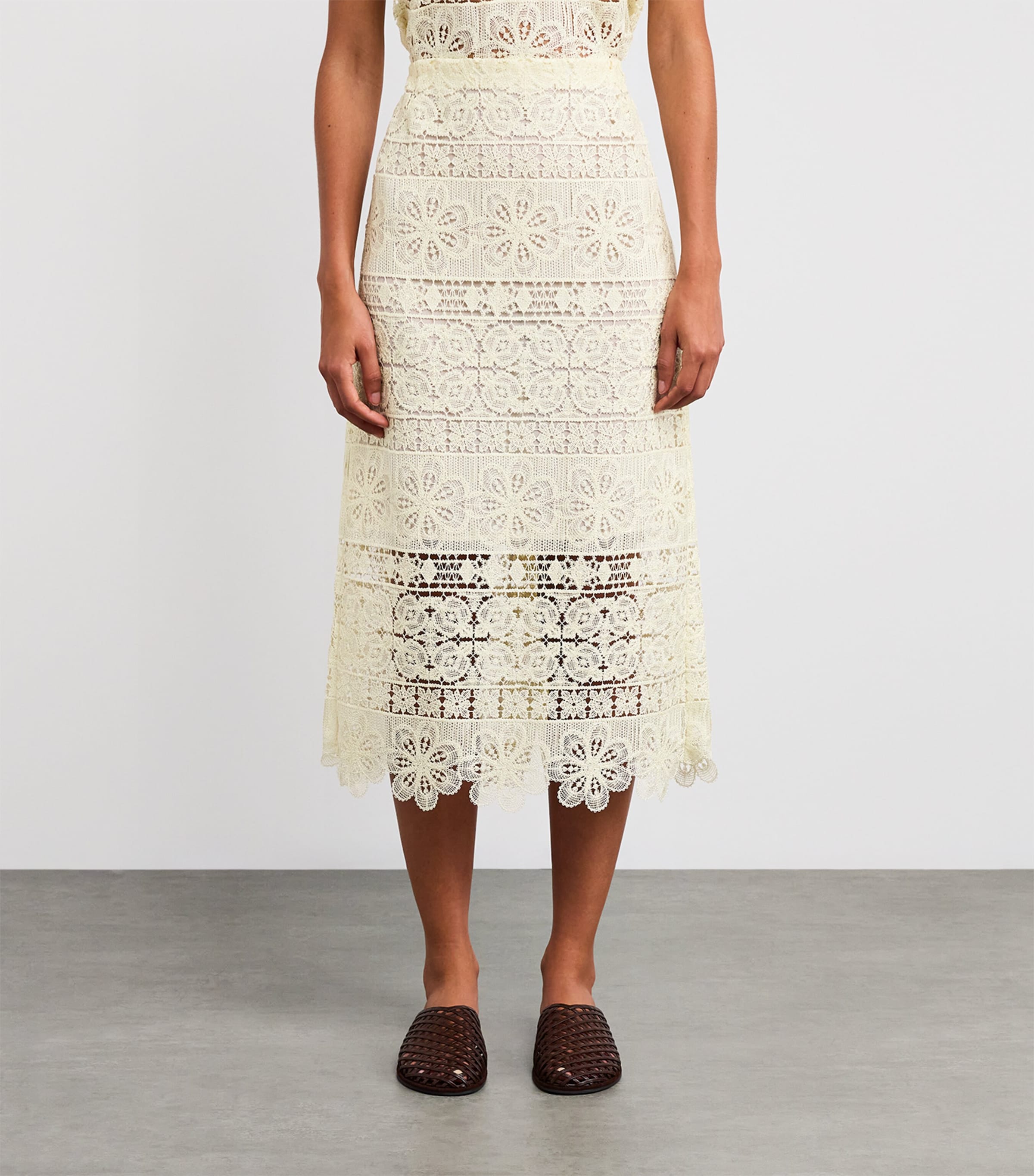 Occasionally, La DoubleJ leaves its maximalist prints behind to instead focus on intricacy through textile work – as showcased by this midi skirt. Reminiscent of ‘70s bohemia, the pencil silhouette spotlights an all-over floral crochet pattern, with a sheer finish that’s primed for pairing with your favourite bralettes and swimwear.