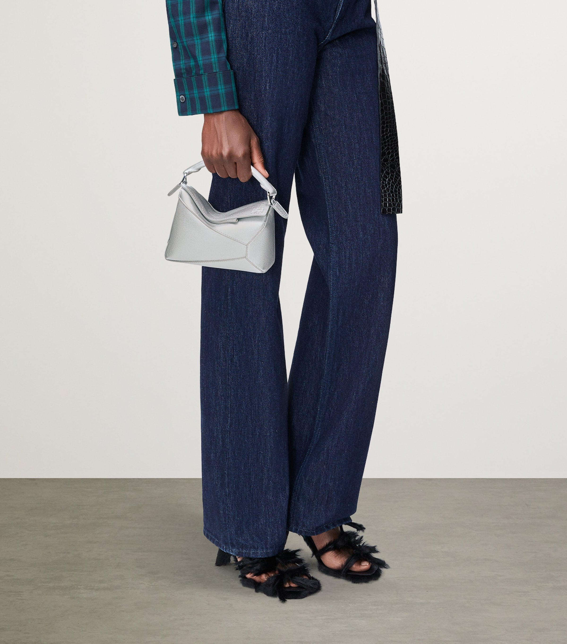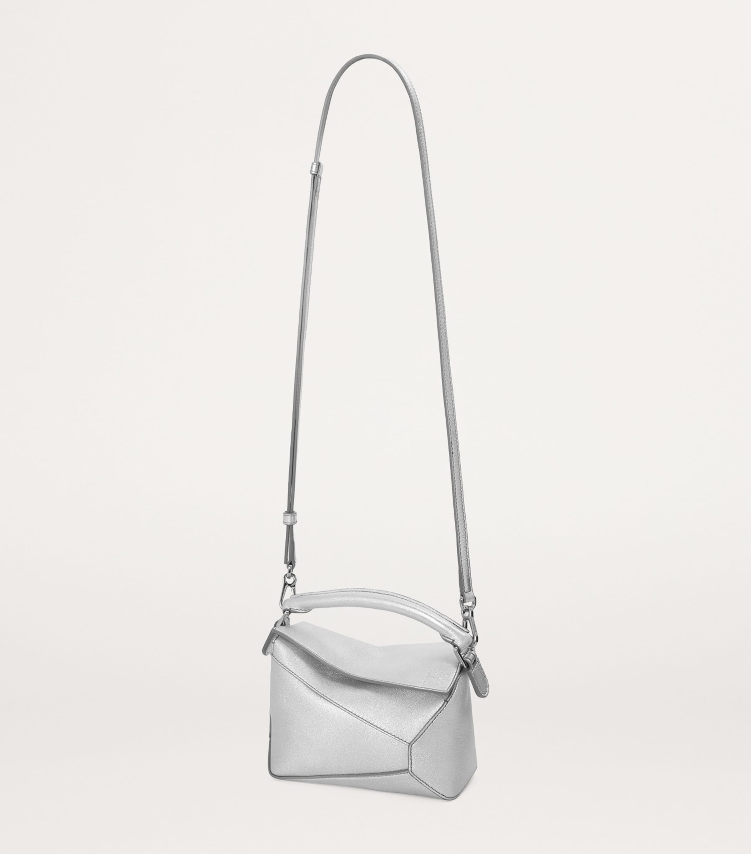 LOEWE Silver Mini Leather Puzzle Edge Top-Handle Bag