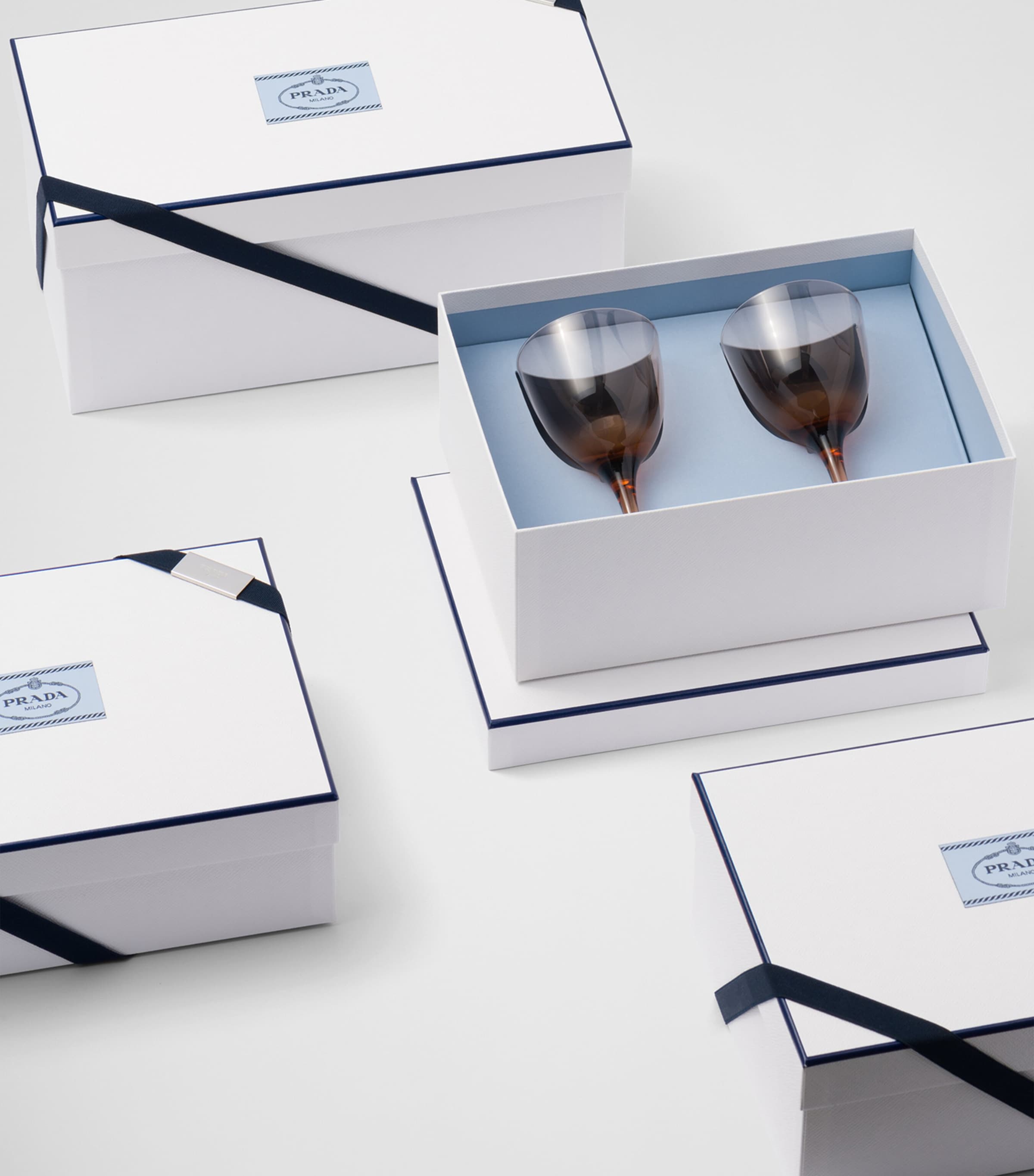 Prada’s Italian heritage is central to its identity, but that doesn’t stop the brand from looking further afield for inspiration; this glassware collection, for instance, claims New York City as its muse. Each piece – including these water glasses in blown Bohemia crystal – is tall and slender, much like the city’s iconic skyscrapers, while the elegant, curvaceous details recall the exclusive clubs and hotspots scattered between them.