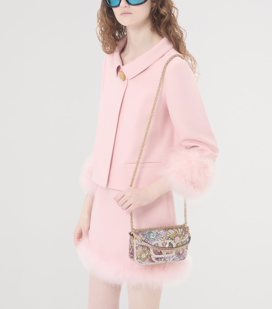With a House as illustrious as Valentino Garavani, one simply has to glance at the logo to recognise its serious style credentials, so the Locò shoulder bag keeps it front and centre. The VLogo is the main adornment on this embellished design, allowing its simple lines and lavish floral sequins to do the heavy lifting.
