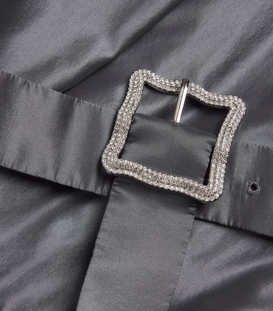 An interplay between masculine and feminine tropes has always been a defining trait of Alexis Mabille’s event dressing and nothing expresses that better than a shirt dress. This iteration revisits the style in crispy taffeta that beautifully maintains the shape between the gently flared skirt and the belted waistline.