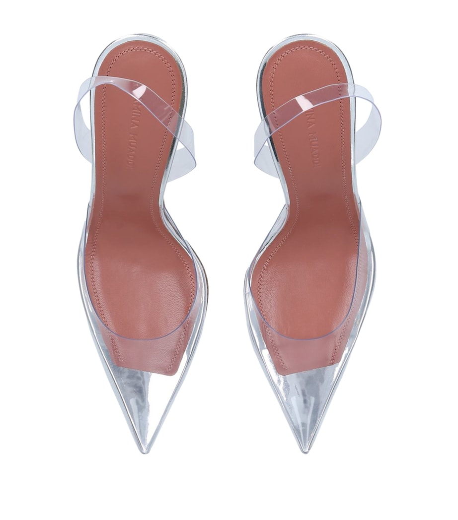 Amina Muaddi first turned footwear on its head in 2017 when debuting her now-iconic pyramid-shape heels. The flared stilettos were instantly embraced by the industry’s most celebrated style stars, offering the perfect match to attitude-laden outfits while revamping classic silhouettes like your favourite slingbacks. Even when rendered in a transparent material – as seen with this iteration of the Holli pumps – they still deliver a powerful statement.