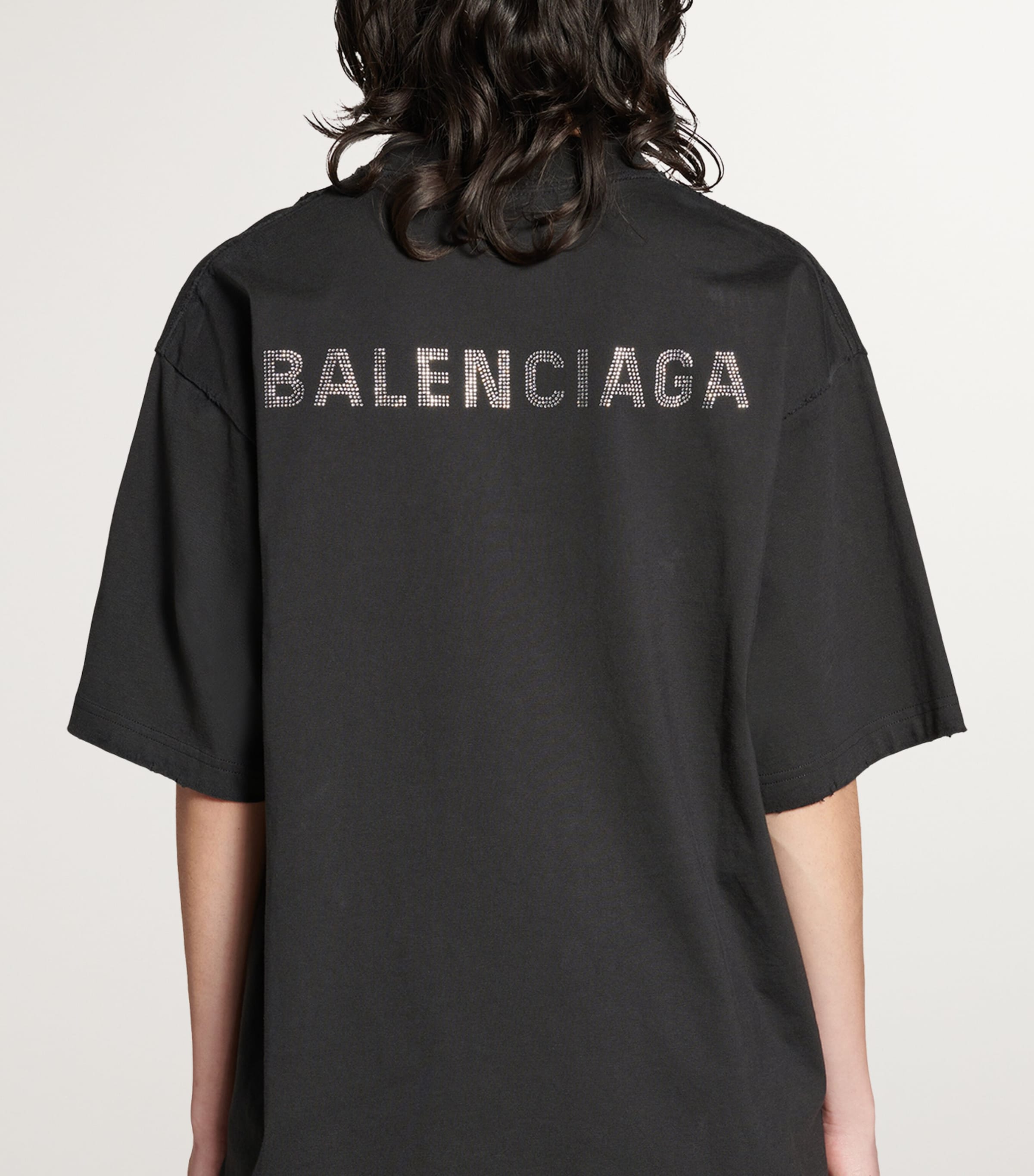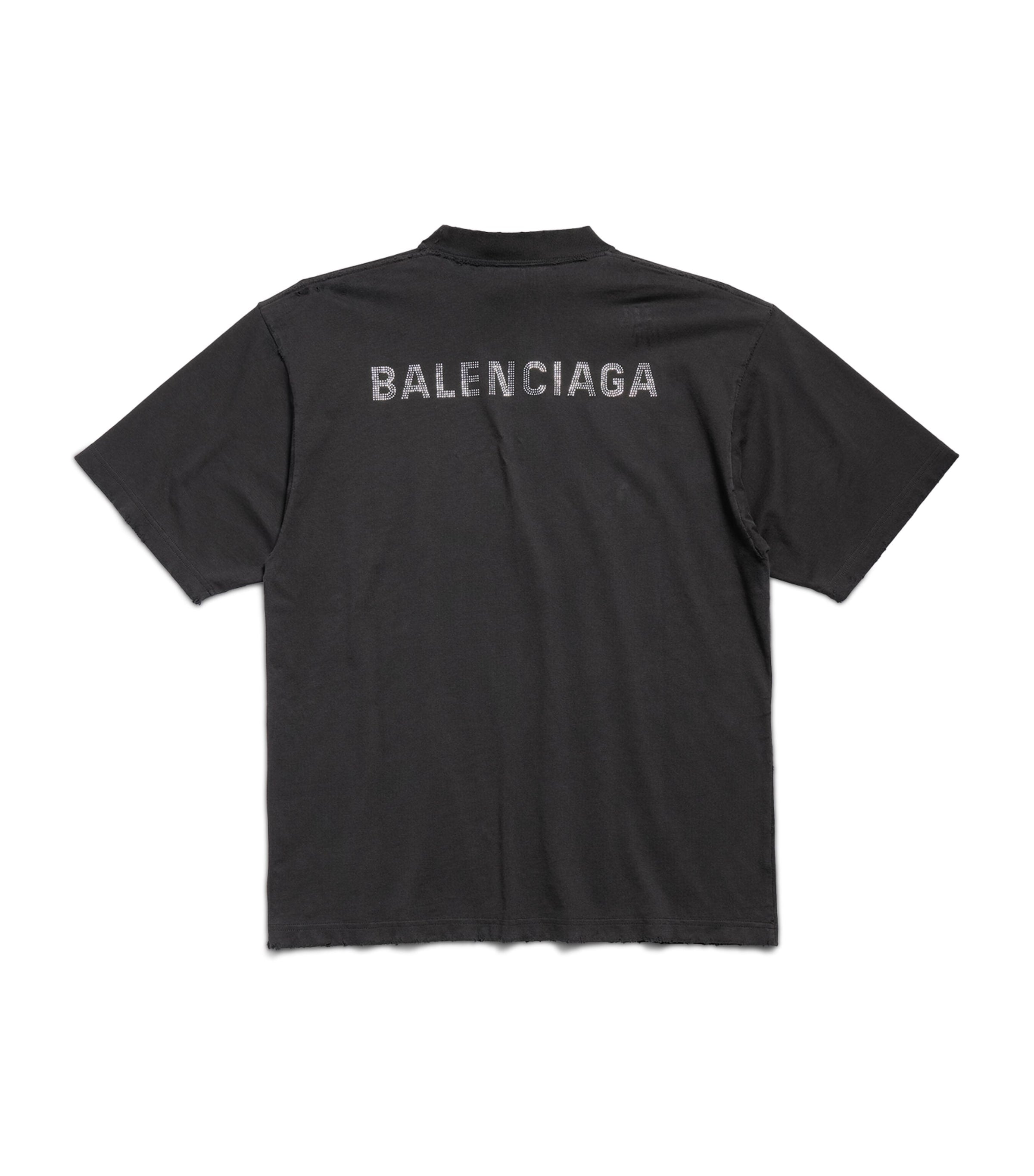 Balenciaga Black Distressed Rhinestone-Logo T-Shirt