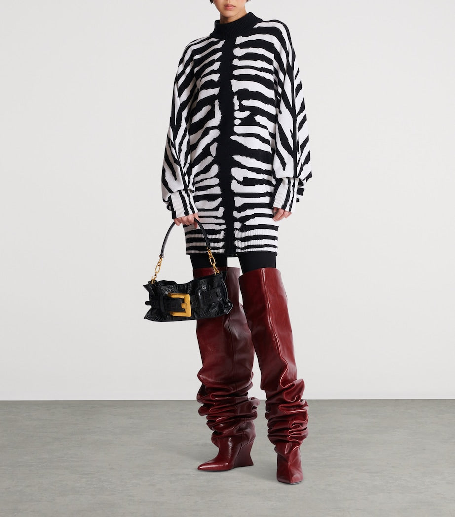 Balmain Black Wool-Cashmere Intarsia Mini Dress