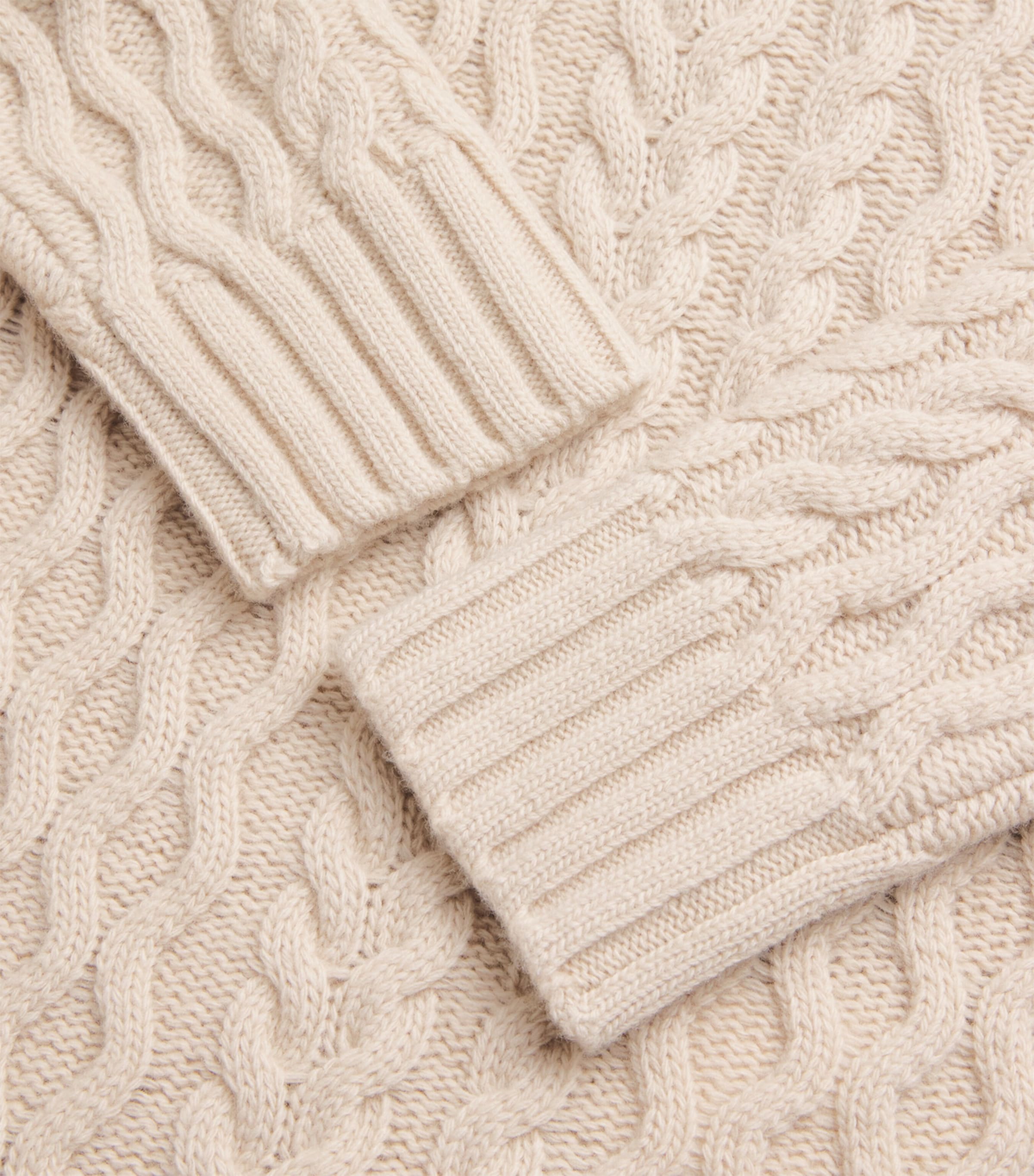 Virgin wool is often the supreme choice for knitwear, thanks to its outstanding balance of thermoregulation, airiness and soft handle. Spun entirely from the yarn, this high-neck sweater from Weekend Max Mara will get you through the transitional periods in style thanks to its tactile Aran-inspired pattern.