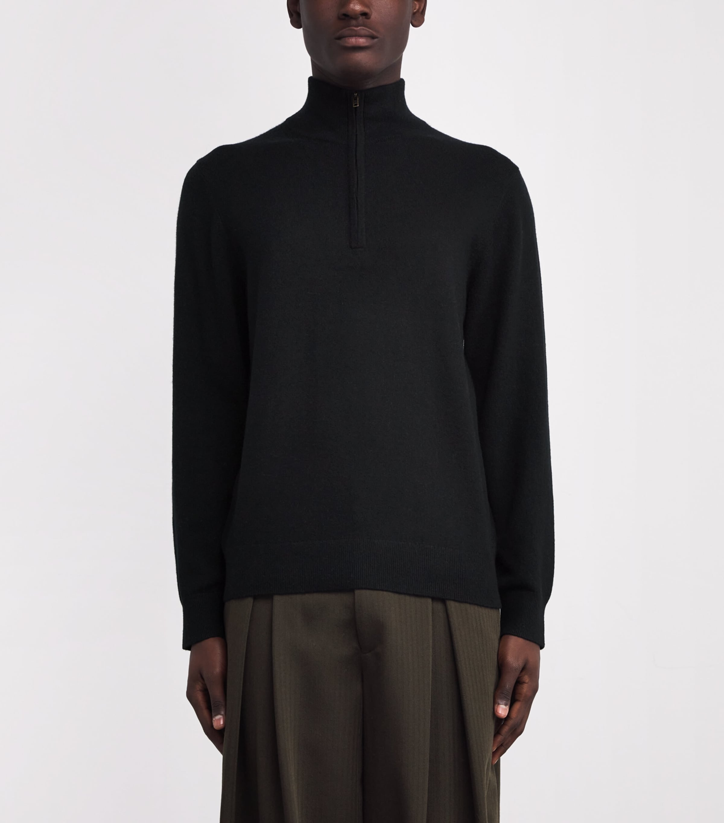Black Cashmere Quarter-Zip Sweater - 001blk black / XL