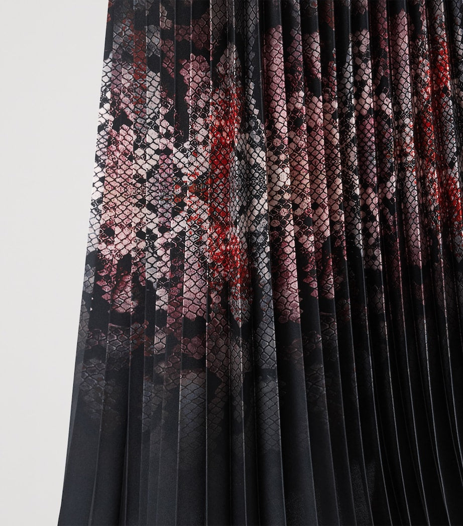 A hybrid of sartorial subversion. Leave it to AllSaints to lend an experimental eye in creating its two-in-one Harley dress. Showcasing the brand’s signature Ophis snake print in pleated precision, the dress is cut with maxi proportions and a plunging neckline. Accompanied with a crew neck sweater, this ensemble comes prepped with all the independent attitude of the London-based label.