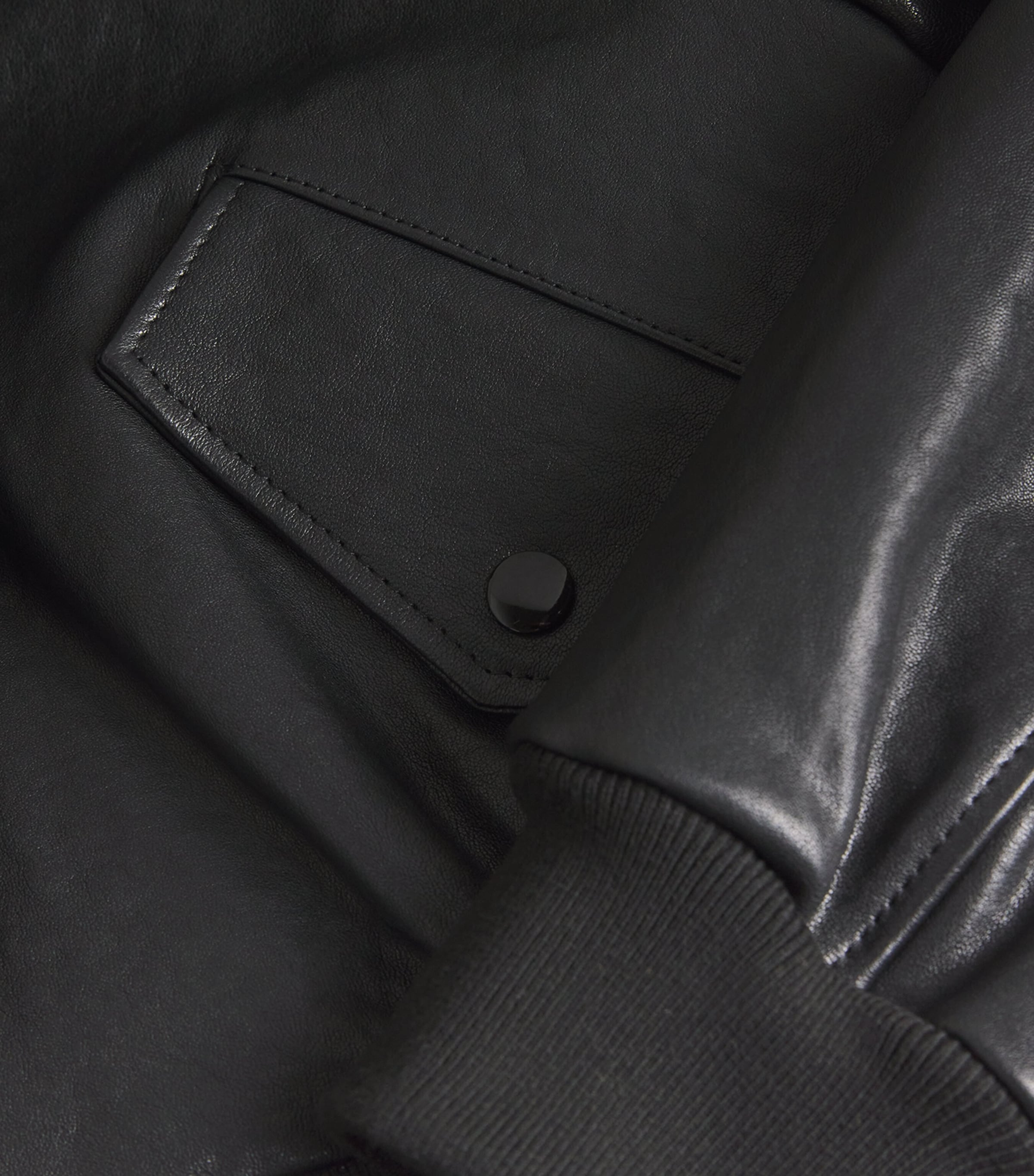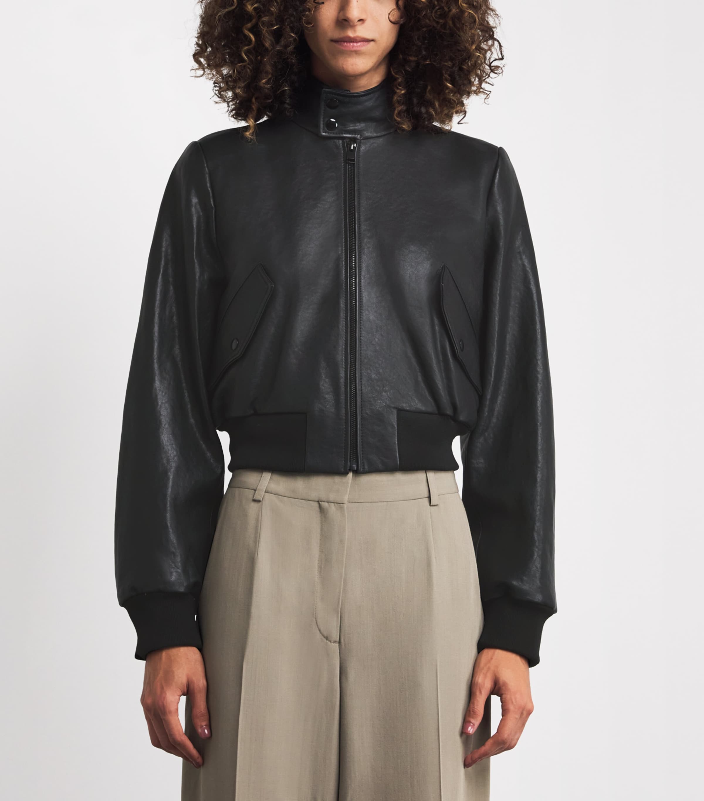 FRAME’s Harrington bomber jacket channels a rebellious edge with every stitch. Crafted from buttery leather, its motorcycle-inspired collar and cinched waist give it a sculpted silhouette that feels both fearless and effortlessly cool.