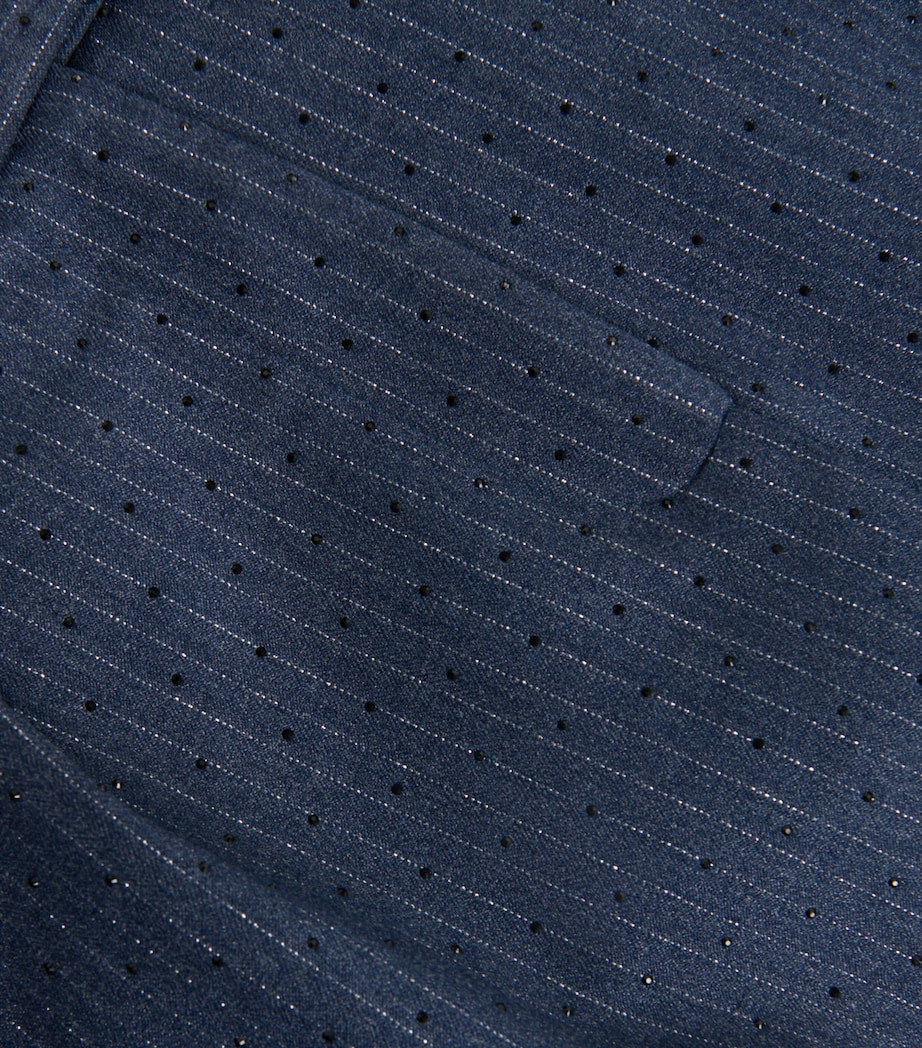 Blue Stripe Rhinestone-Embellished Shorts
