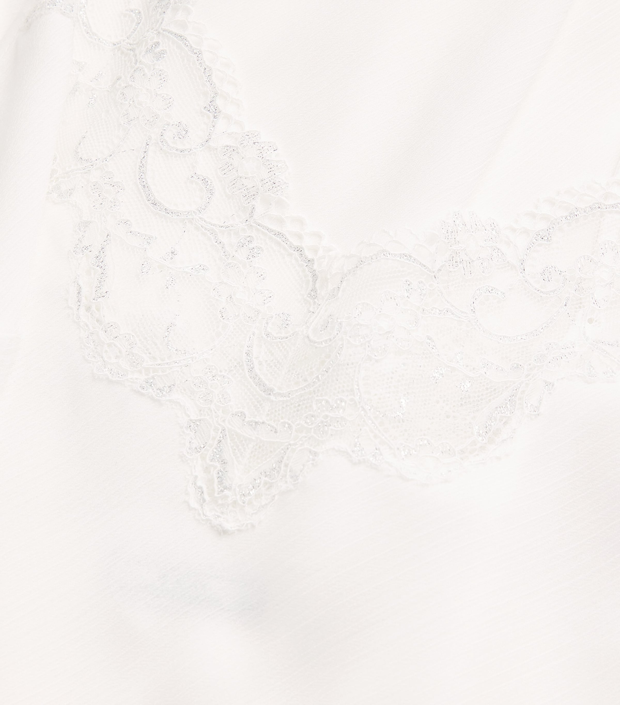Bocan Ivory Silk Chiffon Lace-Trim Elora Nightdress - Off White/Silve / XS/S