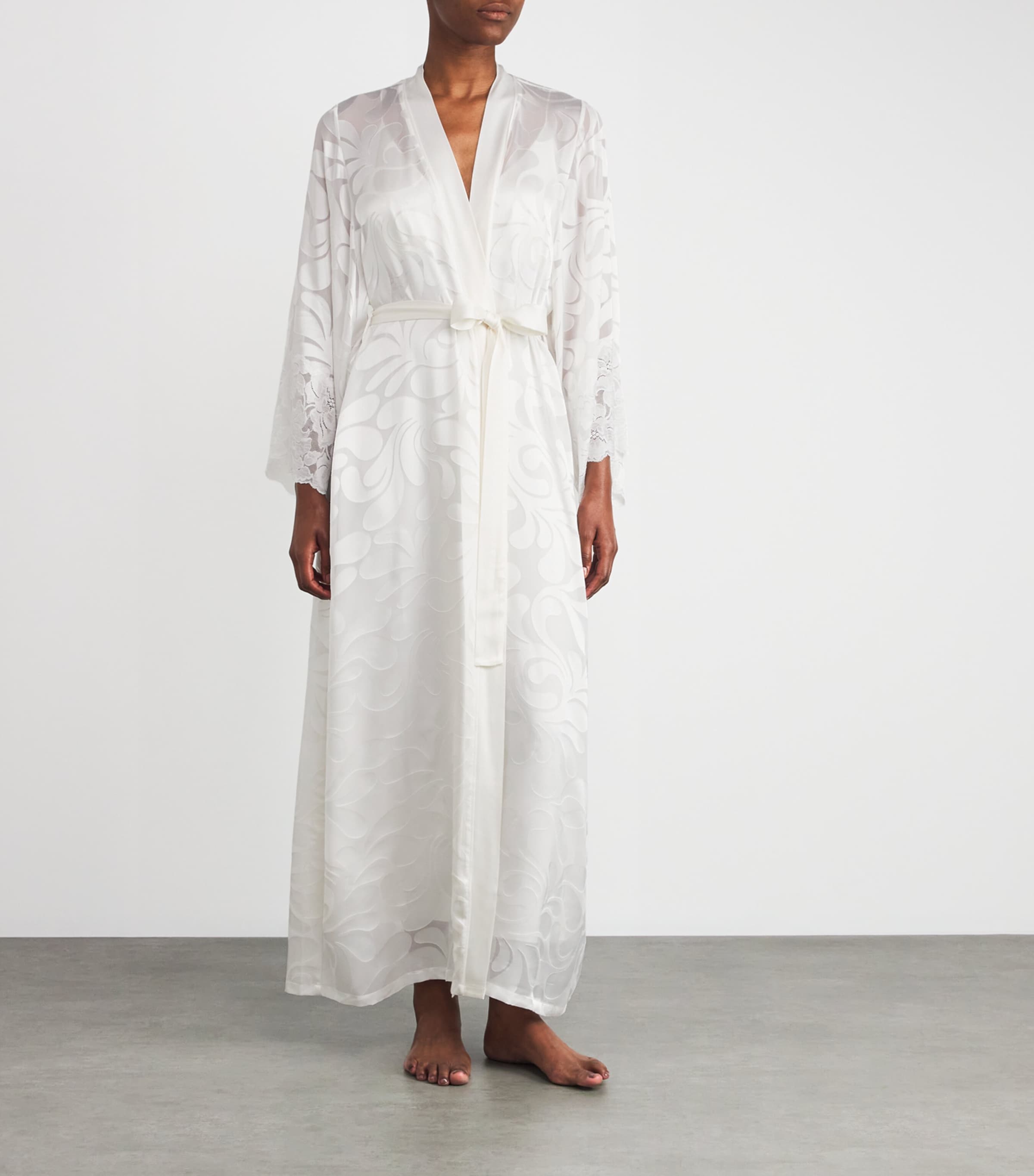 Bocan White Lace-Trim Charlotte Long Robe - white / XS/S