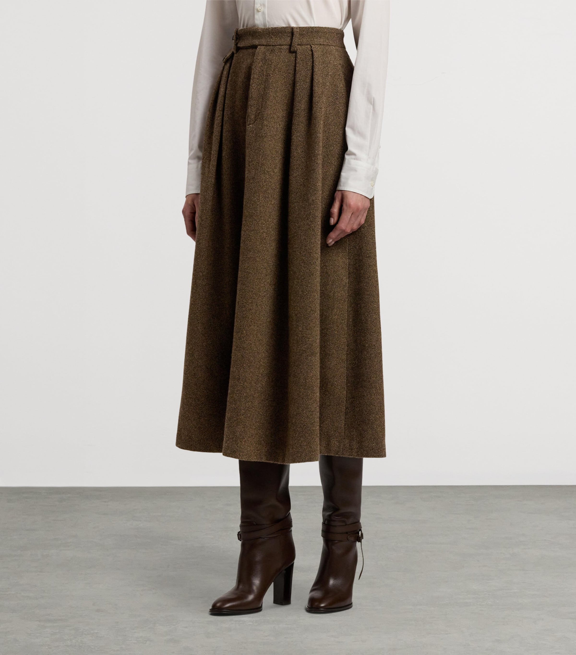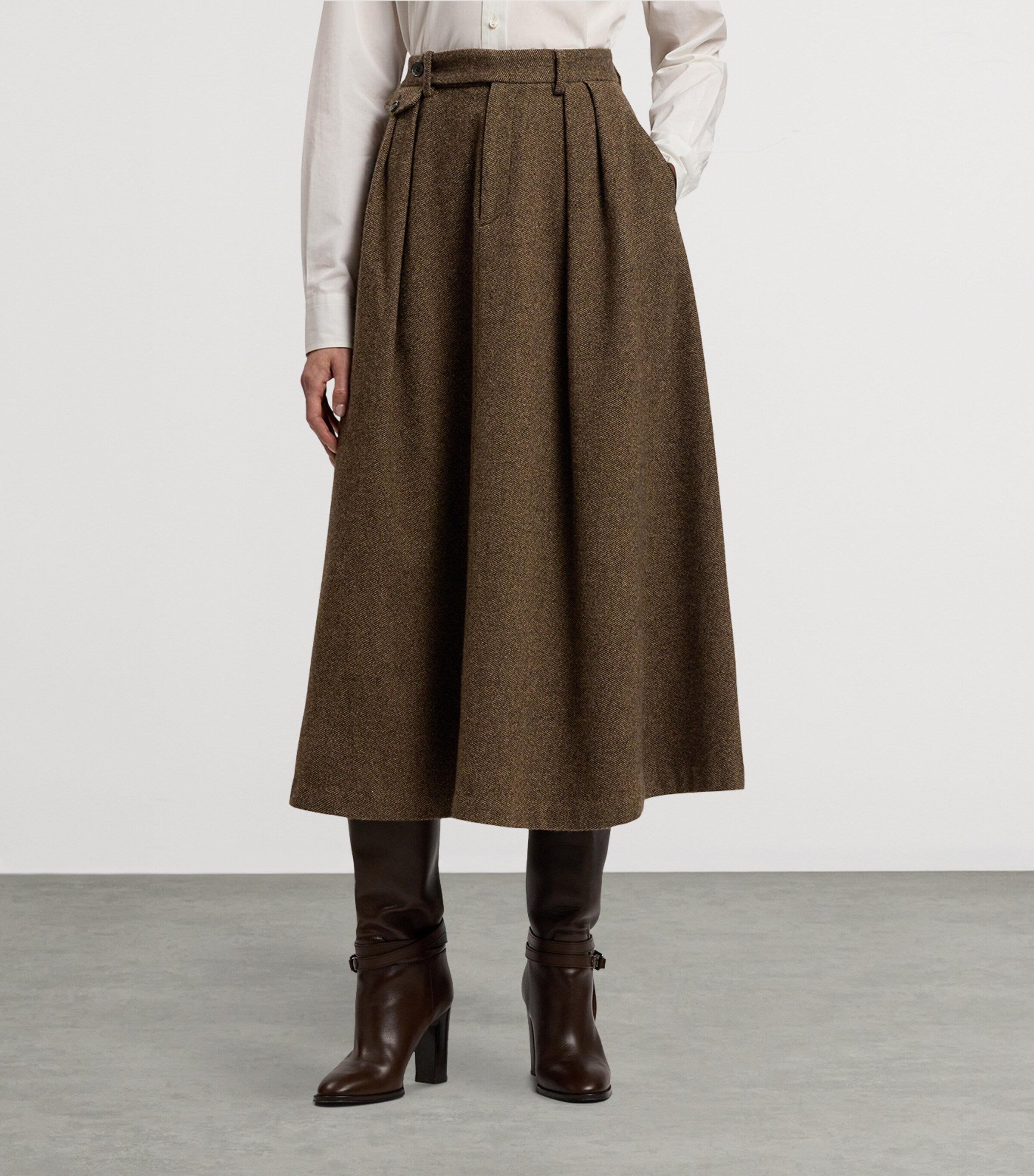 Brown Birdseye Tweed Evilyn Maxi Skirt