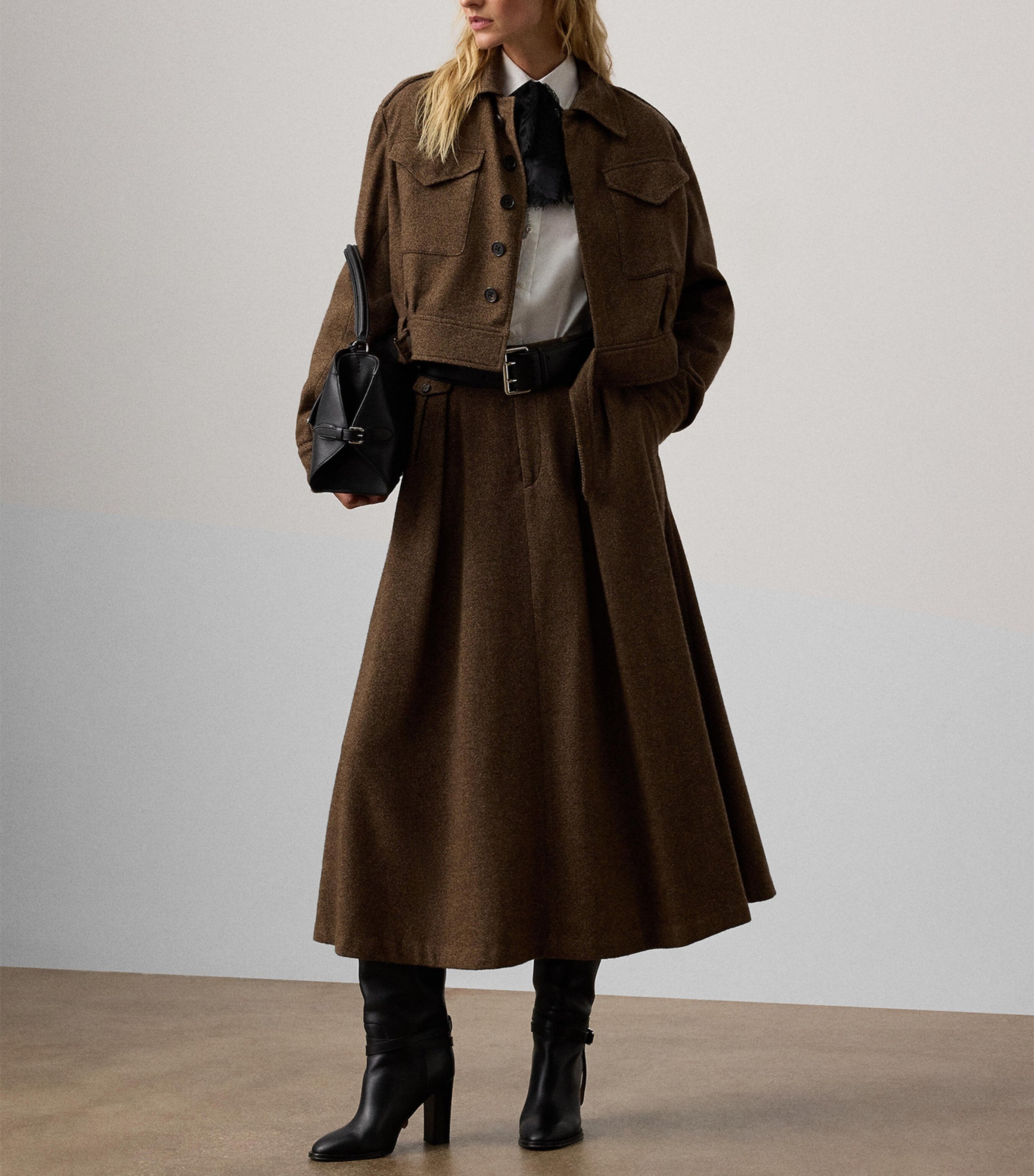 Representing the brand at its most luxurious, Ralph Lauren Collection offers truly timeless pieces that showcase the finest fabrics and exceptional artistry. Crafted from birdseye tweed for a classic look, the Evilyn maxi skirt leans into the label's vintage calling card.
